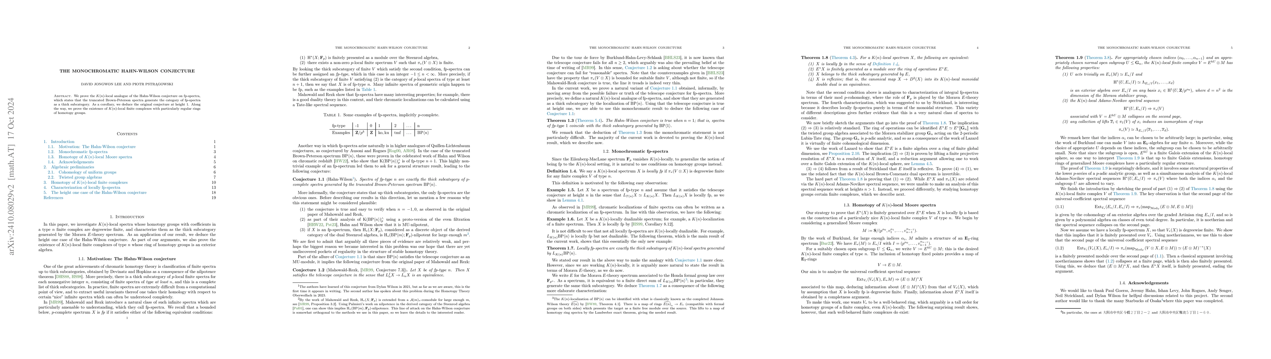 This paper proves the $K(n)$-local version of the Hahn-Wilson conjecture on fp-spectra, showing that truncated Brown-Peterson spectra generate the category of fp-spectra as a thick subcategory, and deduces the original conjecture at height $1$. Additionally, it establishes the existence of $K(n)$-local finite complexes with specific regular homotopy group rings.