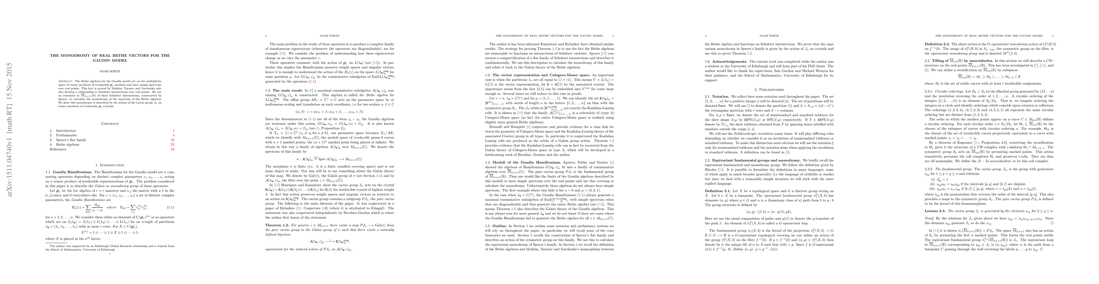 This paper investigates the monodromy of real Bethe vectors for the Gaudin model, proving that the Bethe algebra's spectrum is simple over real points. It demonstrates that the monodromy is governed by the cactus group $J_n$ acting on tensor products of irreducible $\mathfrak{gl}_r$-crystals, using Schubert intersections over $\overline{M}_{0,n+1}(\mathbb{R})$.