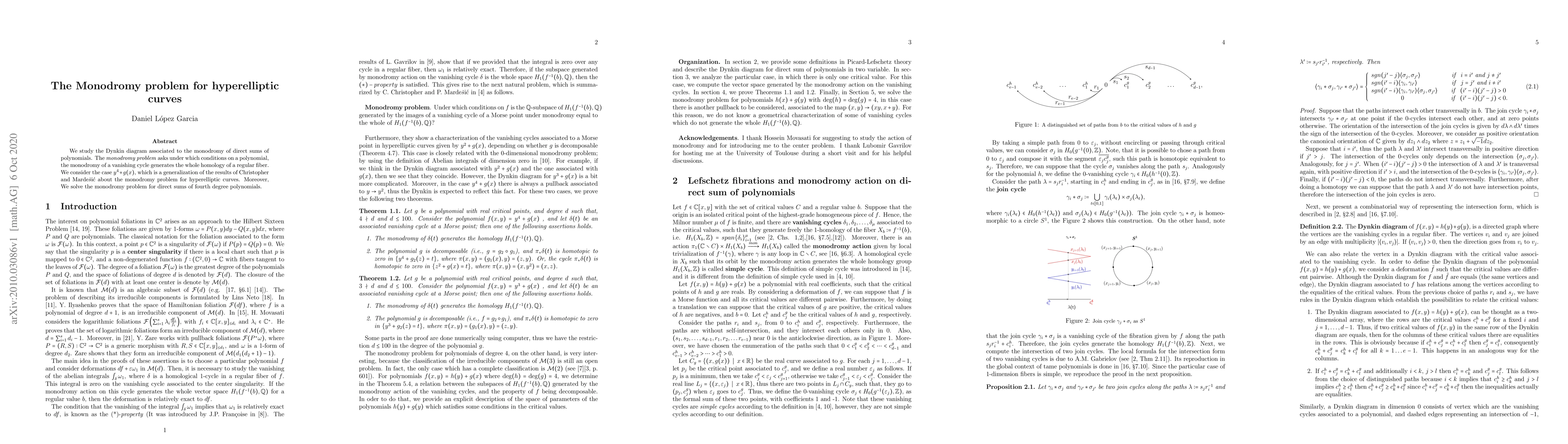 This paper investigates the Dynkin diagram related to the monodromy of direct sums of polynomials, focusing on the conditions under which the monodromy of a vanishing cycle generates the entire homology of a regular fiber. It generalizes previous results for hyperelliptic curves and solves the monodromy problem for direct sums of fourth-degree polynomials.