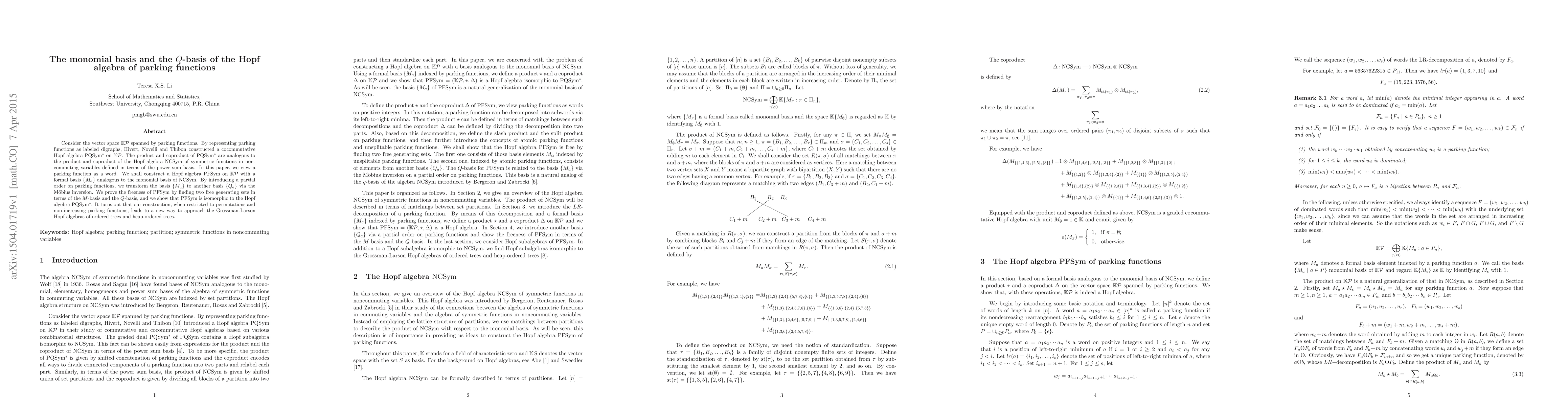 This paper constructs a Hopf algebra PFSym on the vector space of parking functions, establishing a basis analogous to the monomial basis of NCSym. It introduces a partial order to derive a new basis via Möbius inversion and proves the freeness of PFSym, showing its isomorphism to PQSym*. The approach also provides a novel perspective on Grossman-Larson Hopf algebras of ordered trees and heap-ordered trees.