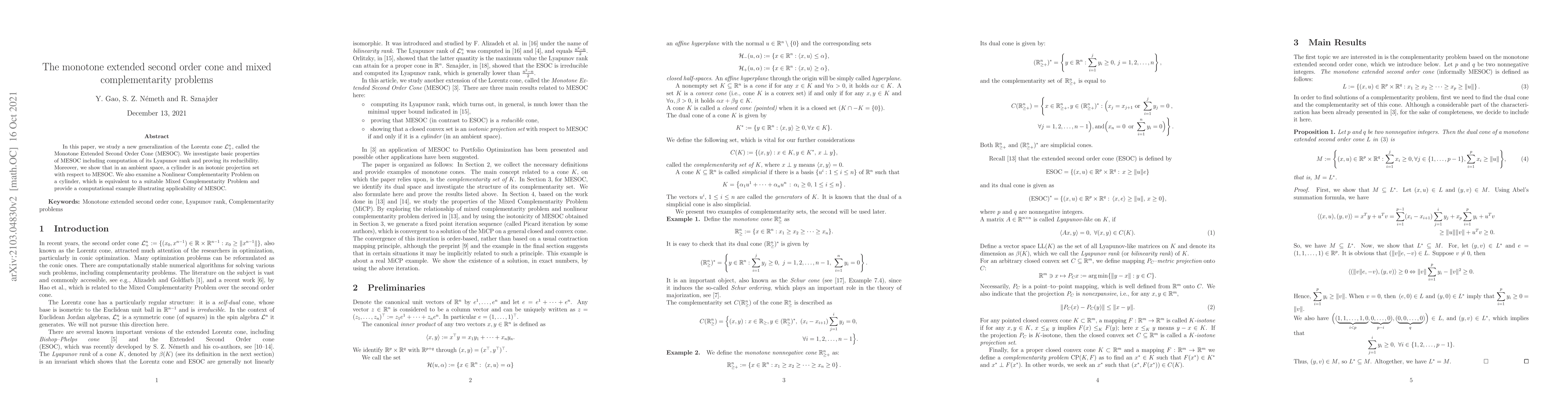 This paper generalizes the Lorentz cone to the Monotone Extended Second Order Cone (MESOC), explores its Lyapunov rank and reducibility, and establishes it as an isotonic projection set in ambient space. It also investigates a Nonlinear Complementarity Problem on a cylinder, equivalent to a Mixed Complementarity Problem, with a computational example demonstrating MESOC's utility.