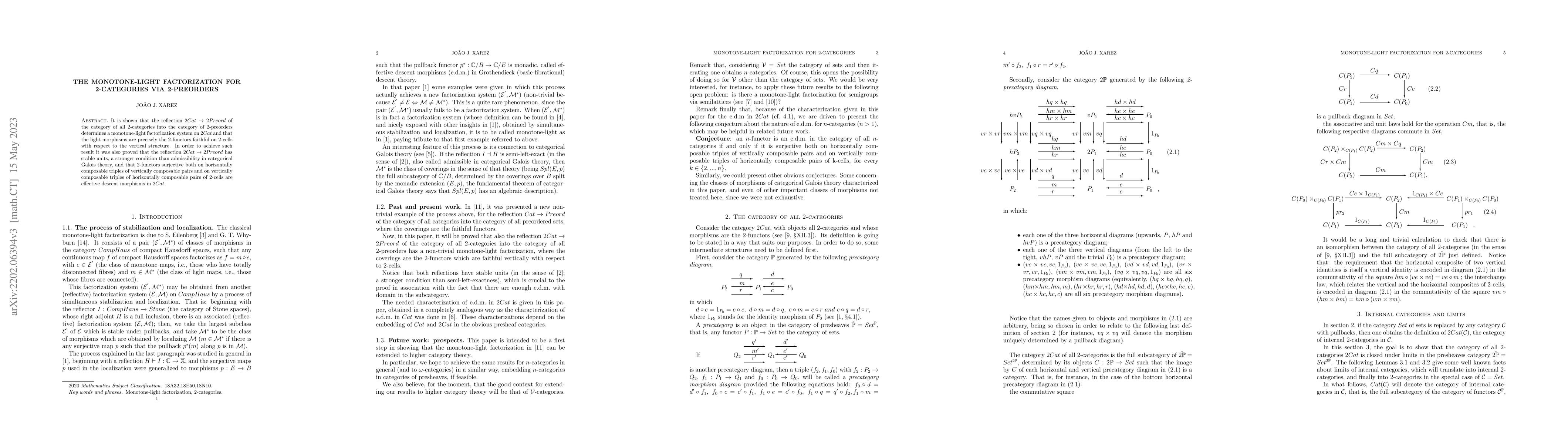 It is shown that the reflection 2Cat --> 2Preord of the category of all 2-categories into the category of 2-preorders determines a monotone-light factorization system on 2Cat and that the light morphisms are precisely the 2-functors faithful on 2-cells with respect to the vertical structure. In order to achieve such result it was also proved that the reflection 2Cat --> 2Preord has stable units, a stronger condition than admissibility in categorical Galois theory, and that 2-functors surjective both on horizontally composable triples of vertically composable pairs and on vertically composable triples of horizontally composable pairs of 2-cells are effective descent morphisms in 2Cat.