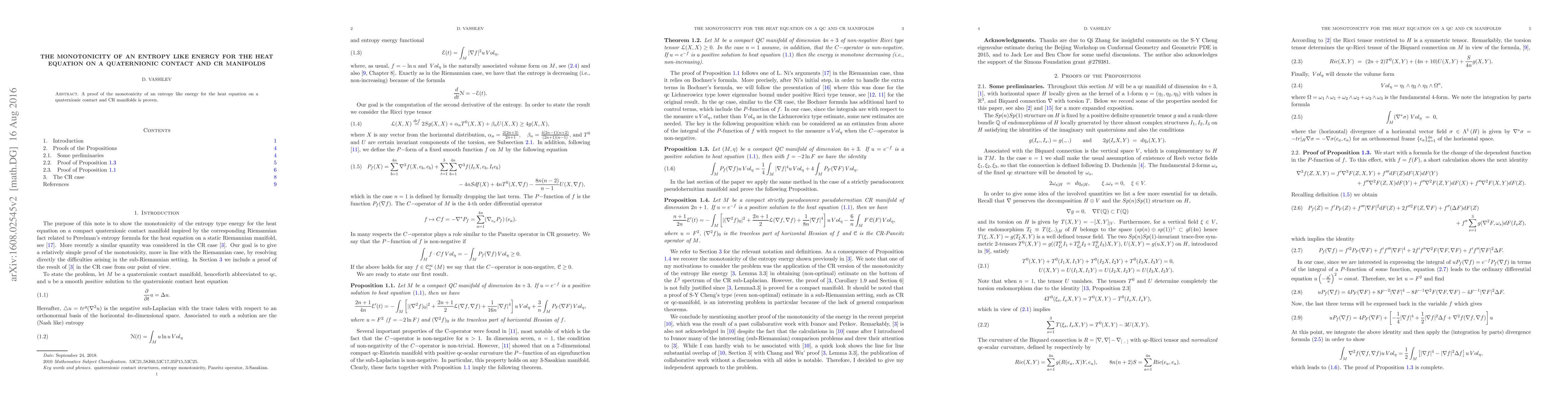A proof of the monotonicity of an entropy like energy for the heat equation on a quaternionic contact and CR manifolds is proven