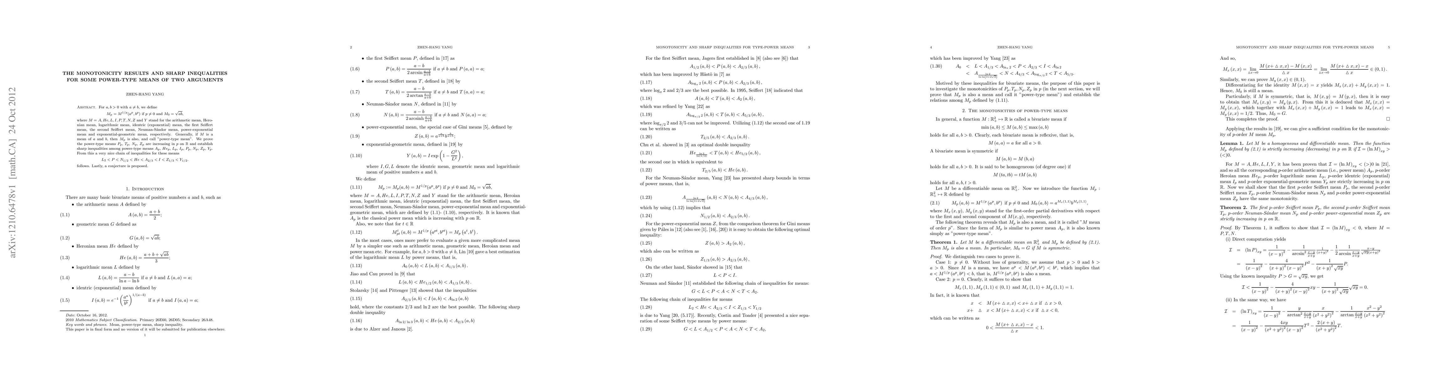 This research paper establishes a chain of inequalities for power-type means and proves that certain means increase with increasing p, leading to sharp inequalities among the different types of means.