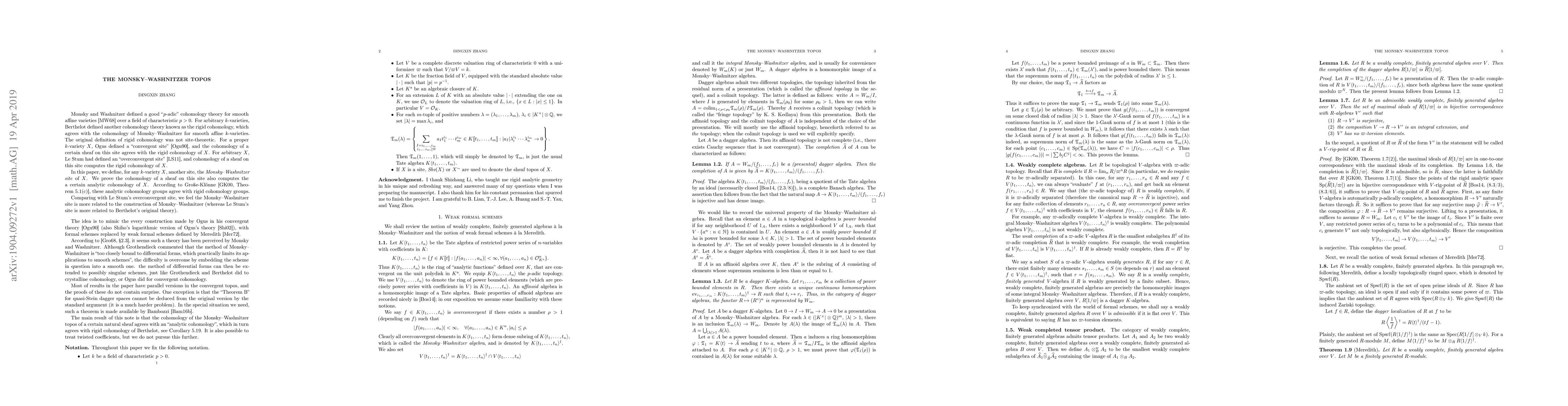 The paper constructs a site over varieties in characteristic p > 0 using Monsky-Washnitzer algebras and proves a comparison theorem between Monsky-Washnitzer cohomology and a specified analytic cohomology.