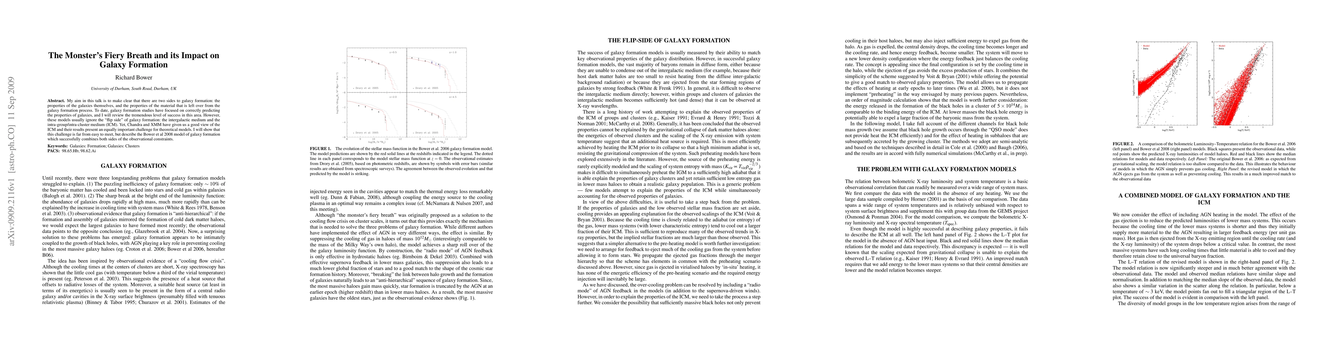My aim in this talk is to make clear that there are two sides to galaxy formation: the properties of the galaxies themselves, and the properties of the material that is left over from the galaxy formation process. To date, galaxy formation studies have focused on correctly predicting the properties of galaxies, and I will review the tremendous level of success in this area. However, these models usually ignore the ``flip side'' of galaxy formation: the intergalactic medium and the intra-group/intra-cluster medium (ICM). Yet, Chandra and XMM have given us a good view of the ICM and their results present an equally important challenge for theoretical models. I will show that this challenge is far from easy to meet, but describe the Bower et al 2008 model of galaxy formation which successfully combines both sides of the observational constraints.