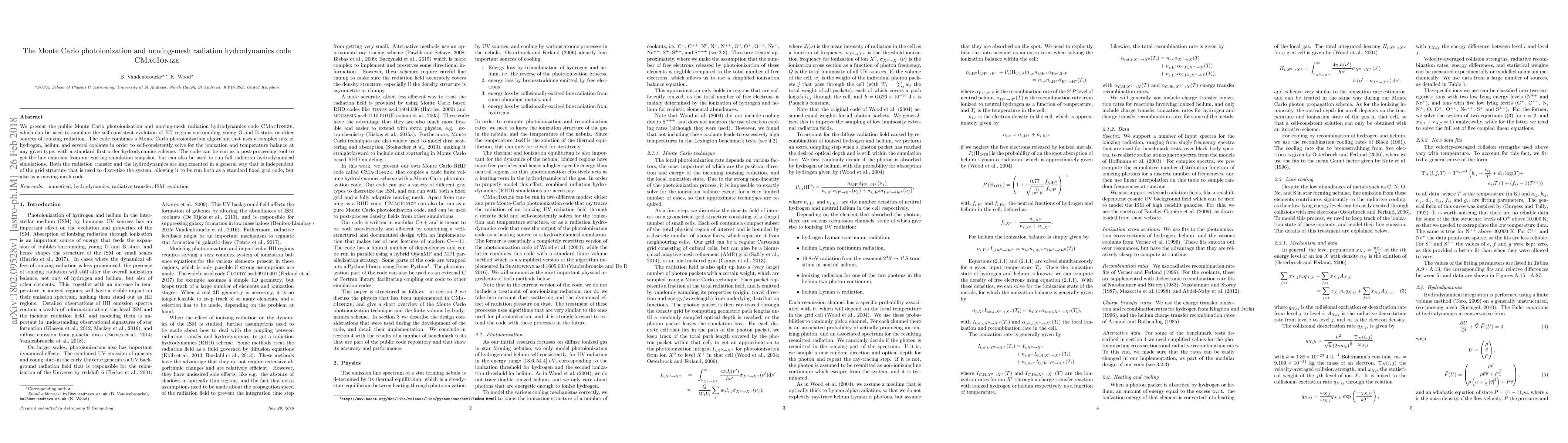 The CMacIonize code integrates Monte Carlo photoionization and moving-mesh radiation hydrodynamics to simulate the evolution of HII regions around young stars. It combines a Monte Carlo photoionization algorithm with a first-order hydrodynamics scheme, allowing for self-consistent ionization and temperature balance calculations.