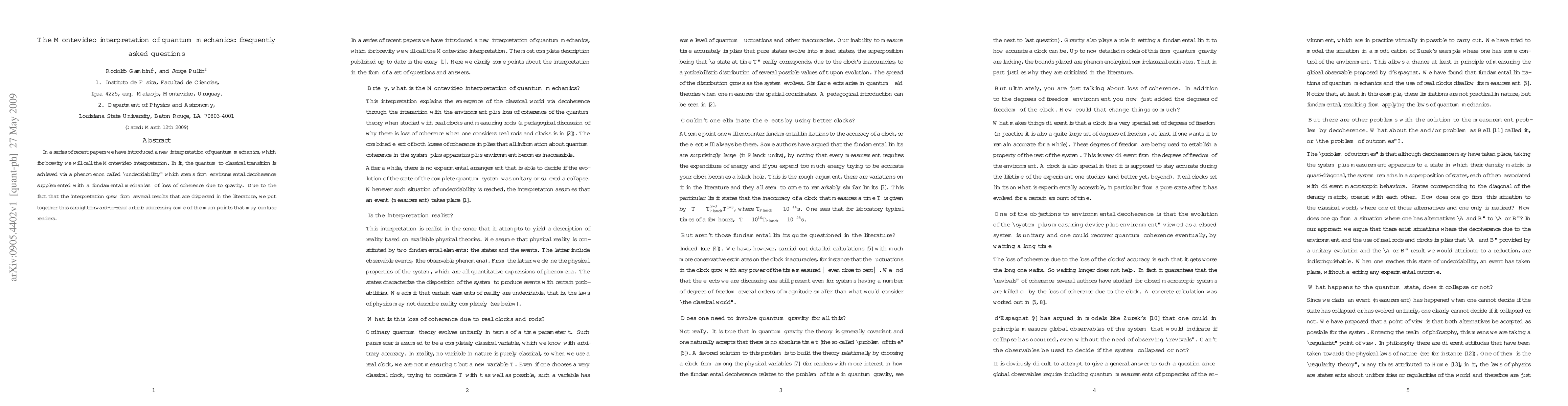 This paper introduces the Montevideo interpretation of quantum mechanics, explaining how "undecidability" through environmental decoherence and gravitational coherence loss facilitates the quantum-to-classical transition. It aims to clarify common questions and misconceptions arising from its dispersed origins in the literature.
