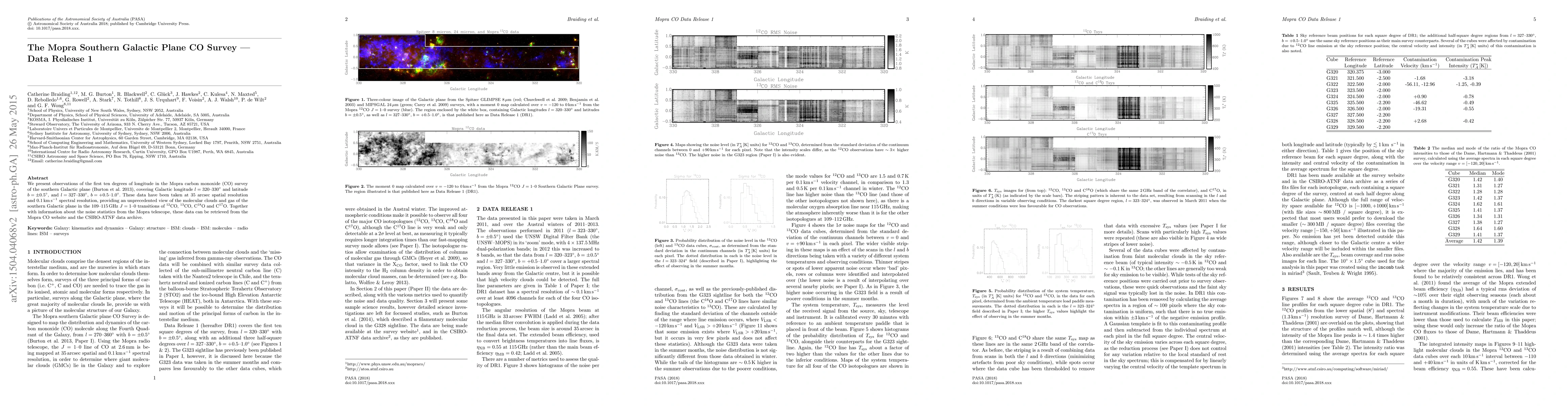 This paper presents the first release of data from the Mopra Southern Galactic Plane CO Survey, detailing observations of molecular clouds and gas in the southern Galactic plane at high spatial and spectral resolution. The data, available from the Mopra CO website and CSIRO-ATNF archive, cover specific regions in the 109-115 GHz transitions of various carbon monoxide isotopes.