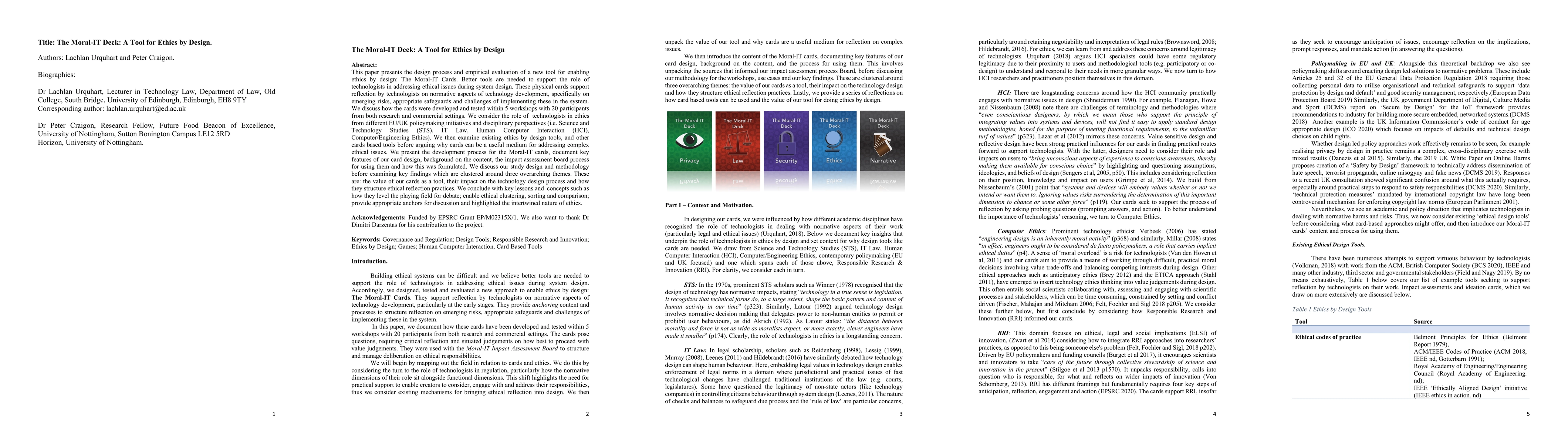 This paper introduces the Moral-IT Cards, a tool designed to facilitate ethical reflection among technologists during system design, and evaluates its effectiveness through workshops. The study highlights the cards' role in structuring ethical discussions and improving the technology design process.