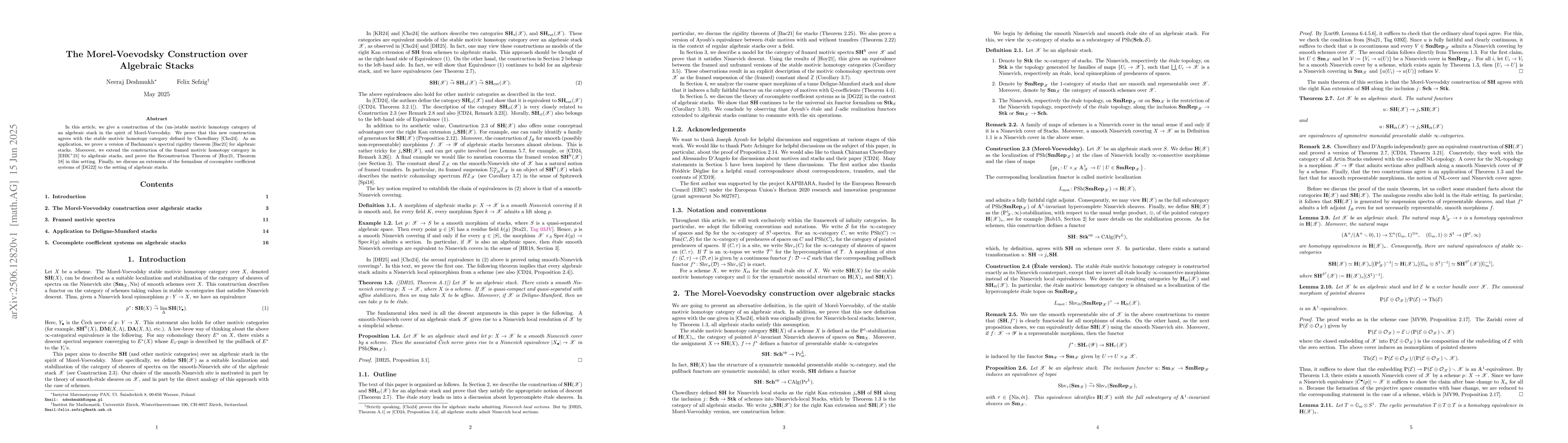 In this article, we give a construction of the (un-)stable motivic homotopy category of an algebraic stack in the spirit of Morel-Voevodsky. We prove that this new construction agrees with the stable motivic homotopy category defined by Chowdhury and D'Angelo. As an application, we extend Bachmann's spectral rigidity theorem to algebraic stacks. Moreover, we extend the construction of the framed motivic homotopy category to algebraic stacks and prove Hoyois' Reconstruction Theorem in this setting. Finally, we discuss an extension of the formalism of cocomplete coefficient systems \`a la Drew-Gallauer to algebraic stacks.