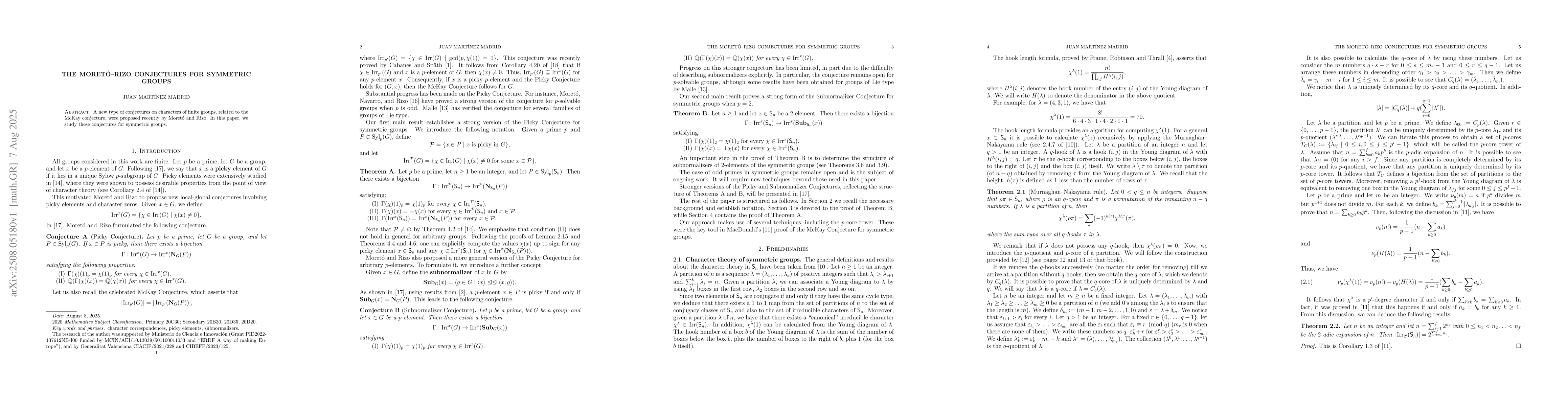 A new type of conjectures on characters of finite groups, related to the McKay conjecture, were proposed recently by Moret\'o and Rizo. In this paper, we study these conjectures for symmetric groups.