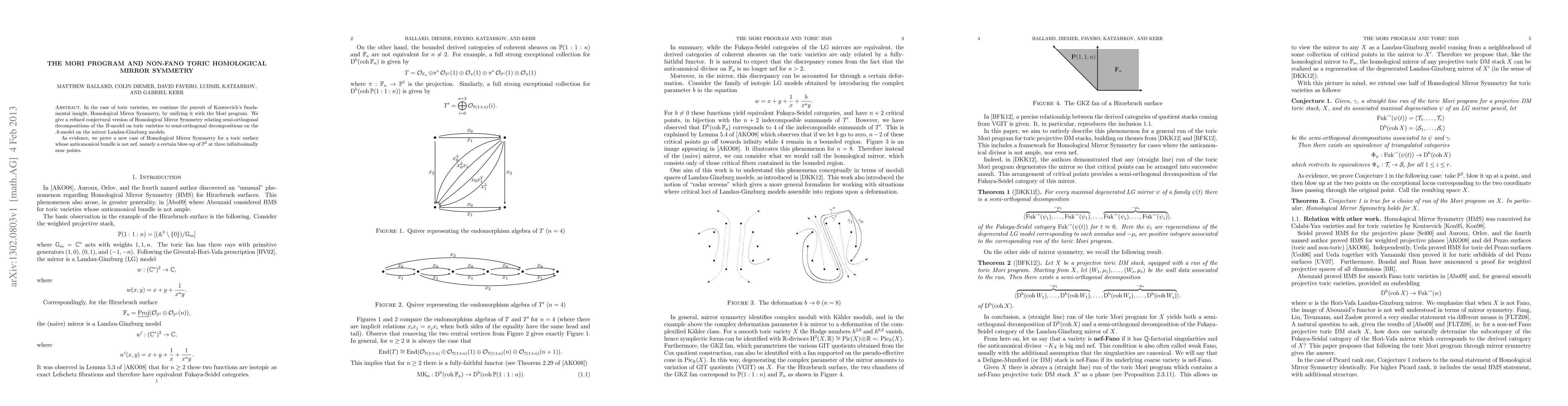 In the case of toric varieties, we continue the pursuit of Kontsevich's fundamental insight, Homological Mirror Symmetry, by unifying it with the Mori program. We give a refined conjectural version of Homological Mirror Symmetry relating semi-orthogonal decompositions of the $B$-model on toric varieties to semi-orthogonal decompositions on the $A$-model on the mirror Landau-Ginzburg models. As evidence, we prove a new case of Homological Mirror Symmetry for a toric surface whose anticanonical bundle is not nef, namely a certain blow-up of $\P^2$ at three infinitesimally near points.