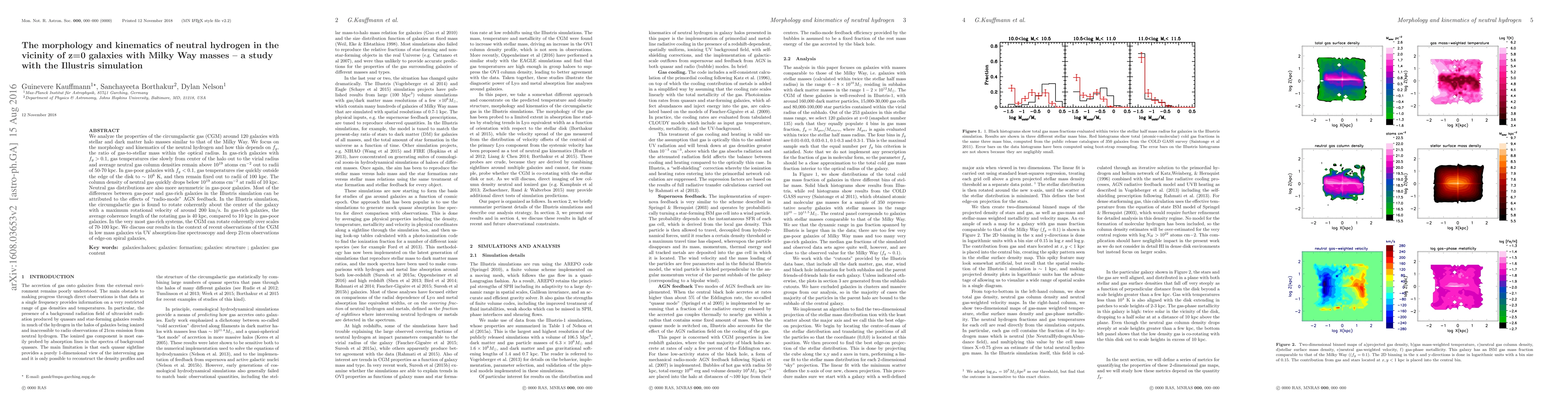 We analyze the properties of the circumgalactic gas (CGM) around 120 galaxies with stellar and dark matter halo masses similar to that of the Milky Way. We focus on the morphology and kinematics of the neutral hydrogen and how this depends on f_g, the ratio of gas-to-stellar mass within the optical radius. In gas-rich galaxies with f_g > 0.1, gas temperatures rise slowly from center of the halo out to the virial radius and average neutral gas column densities remain above 10^19 atoms cm^-2 out to radii of 50-70 kpc. In gas-poor galaxies with f_g < 0.1, gas temperatures rise quickly outside the edge of the disk to 10^6 K, and then remain fixed out to radii of 100 kpc. The column density of neutral gas quickly drops below 10^19 atoms cm^-2 at radii of 10 kpc. Neutral gas distributions are also more asymmetric in gas-poor galaxies. Most of the differences between gas-poor and gas-rich galaxies in the Illustris simulation can be attributed to the effects of "radio-mode" AGN feedback. In the Illustris simulation, the circumgalactic gas is found to rotate coherently about the center of the galaxy with a maximum rotational velocity of around 200 km/s. In gas-rich galaxies, the average coherence length of the rotating gas is 40 kpc, compared to 10 kpc in gas-poor galaxies. In the very most gas-rich systems, the CGM can rotate coherently over scales of 70-100 kpc. We discuss our results in the context of recent observations of the CGM in low mass galaxies via UV absorption-line spectroscopy and deep 21cm observations of edge-on spiral galaxies.