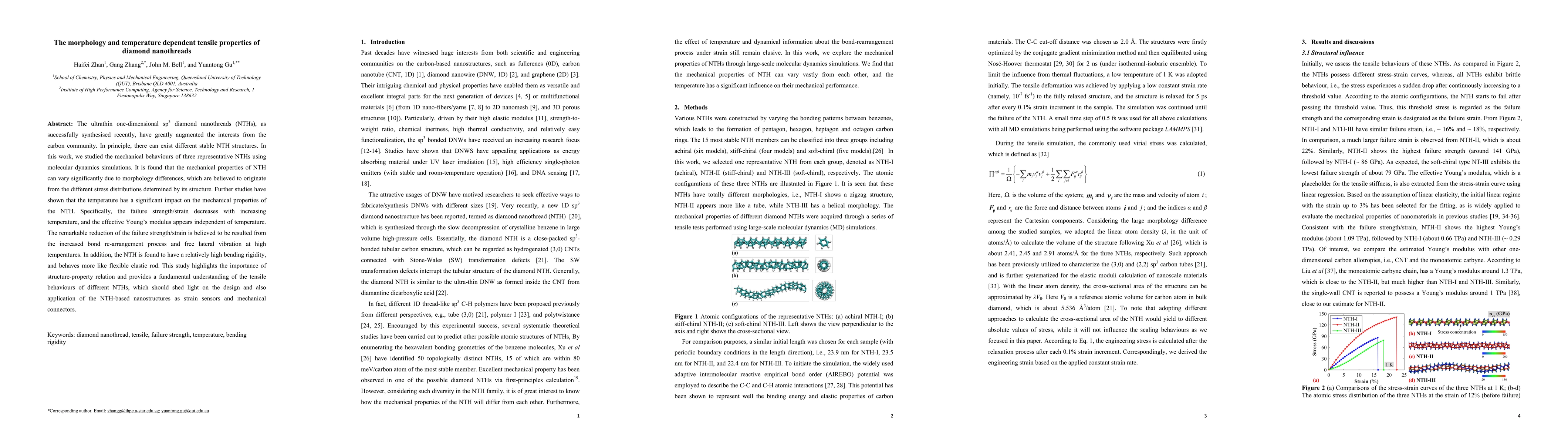 Molecular dynamics simulations reveal significant variations in the mechanical properties of diamond nanothreads due to morphology differences and temperature. Temperature impacts failure strength/strain and effective Young's modulus, while high temperatures increase bond re-arrangement and lateral vibration. Nanothreads exhibit high bending rigidity, behaving like flexible elastic rods, aiding design for strain sensors and mechanical connectors.