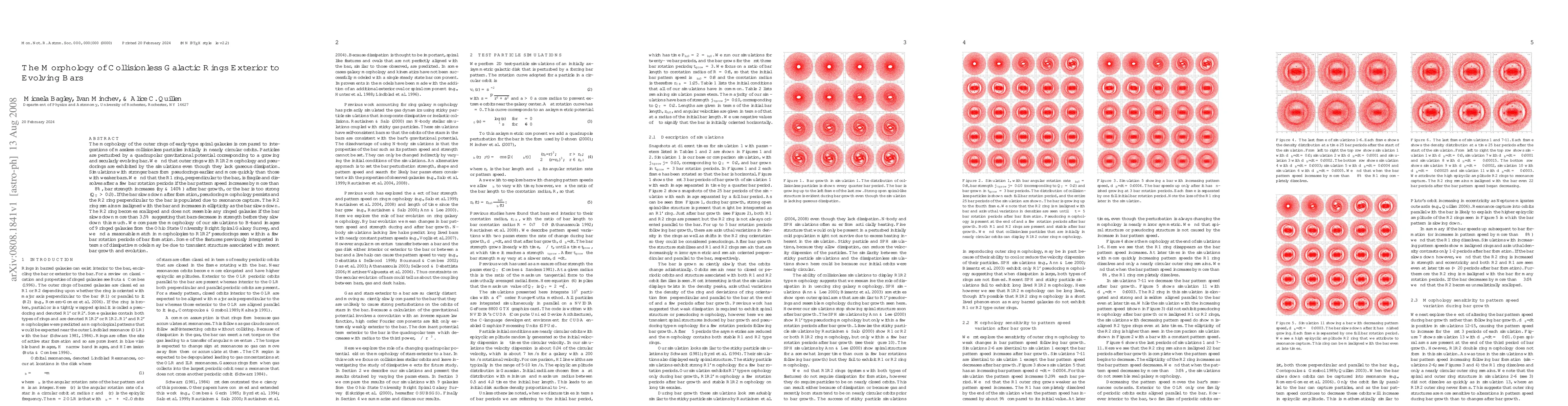 This paper investigates the morphology of collisionless galactic rings exterior to evolving bars using simulations of massless particles. It finds that R1R2 morphology and pseudorings form without gas dissipation, with stronger bars creating pseudorings faster. The R1 ring is fragile and dissolves under certain conditions, while the R2 ring persists if the bar slows down, becoming scalloped if the bar weakens significantly. The study correlates these findings with observed ringed galaxies, suggesting that transient structures may arise from recent bar evolution rather than dissipative processes.