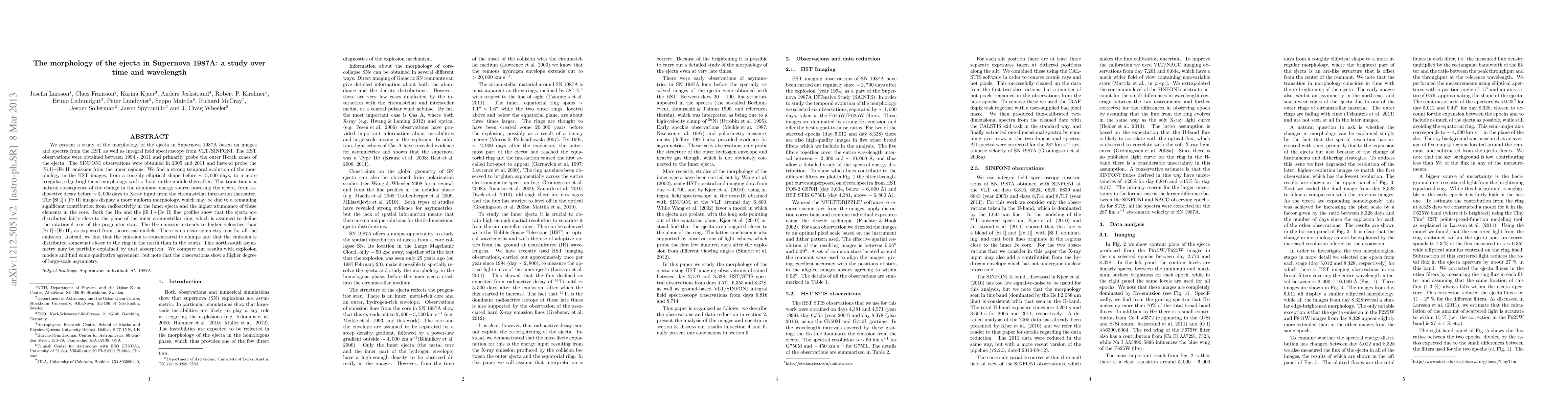 The morphology of Supernova 1987A's ejecta shows significant temporal evolution over time, transitioning from an elliptical shape to a more irregular form after ~5,000 days, with asymmetry in the north-south distribution of emission.