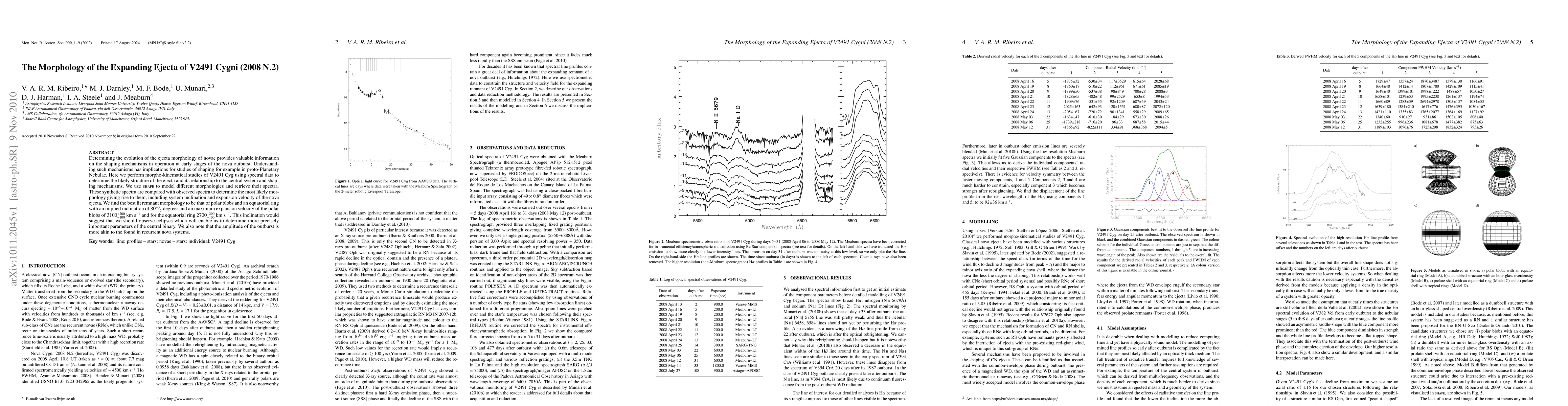 Researchers studied V2491 Cygni, a nova, to understand its ejecta morphology, finding it best matched polar blobs and an equatorial ring with high expansion velocities and a suggested inclination angle of 80 degrees.