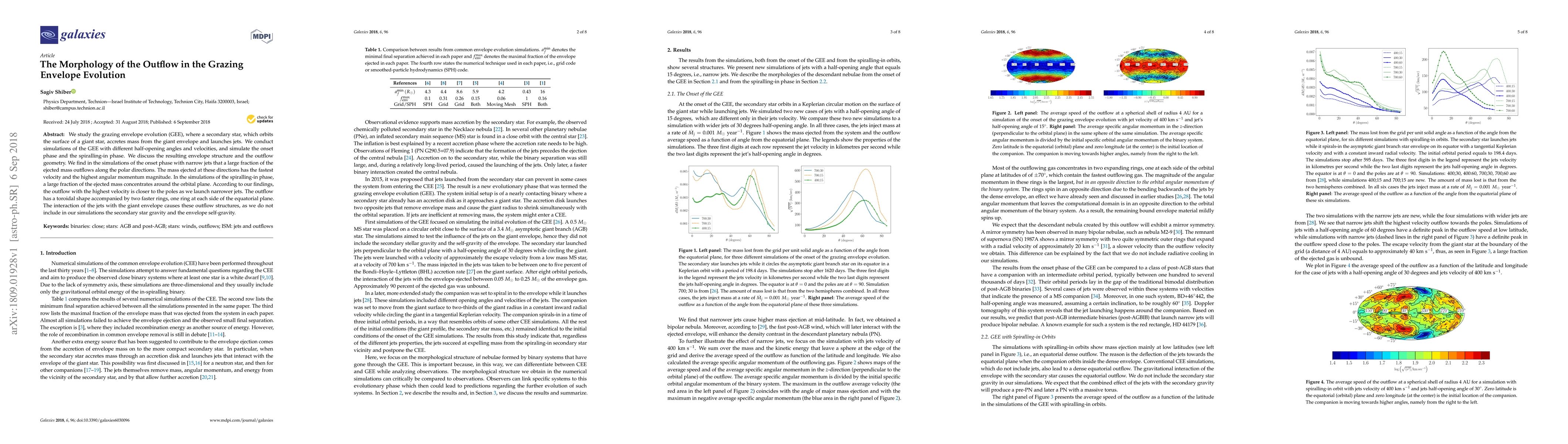 We study the grazing envelope evolution (GEE), where a secondary star, which orbits the surface of a giant star, accretes mass from the giant envelope and launches jets. We conduct simulations of the GEE with different half-opening angles and velocities, and simulate the onset phase and the spiralling-in phase. We discuss the resulting envelope structure and the outflow geometry. We find in the simulations of the onset phase with narrow jets that a large fraction of the ejected mass outflows along the polar directions. The mass ejected at these directions has the fastest velocity and the highest angular momentum magnitude. In the simulations of the spiralling-in phase, a large fraction of the ejected mass concentrates around the orbital plane. According to our findings, the outflow with the highest velocity is closer to the poles as we launch narrower jets. The outflow has a toroidal shape accompanied by two faster rings, one ring at each side of the equatorial plane. The interaction of the jets with the giant envelope causes these outflow structures, as we do not include in our simulations the secondary star gravity and the envelope self-gravity.