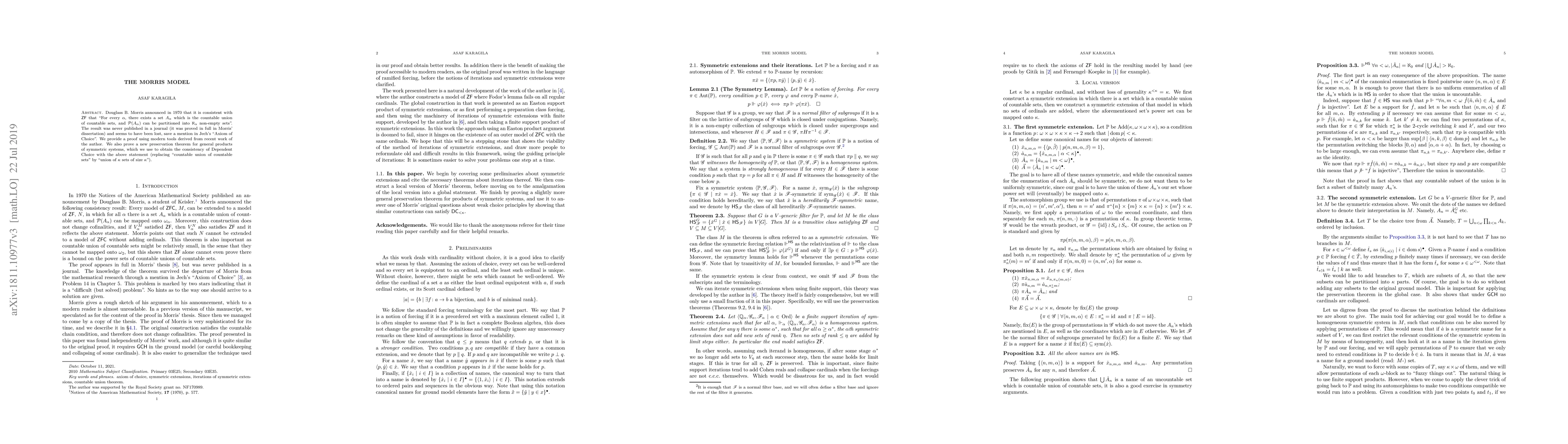Douglass B. Morris announced in 1970 that it is consistent with ZF that "For every $\alpha$, there exists a set $A_\alpha$ which is the countable union of countable sets, and $\mathcal P(A_\alpha)$ can be partitioned into $\aleph_\alpha$ non-empty sets". The result was never published in a journal (it was proved in full in Morris' dissertation) and seems to have been lost, save a mention in Jech's "Axiom of Choice". We provide a proof using modern tools derived from recent work of the author. We also prove a new preservation theorem for general products of symmetric systems, which we use to obtain the consistency of Dependent Choice with the above statement (replacing "countable union of countable sets" by "union of $\kappa$ sets of size $\kappa$").