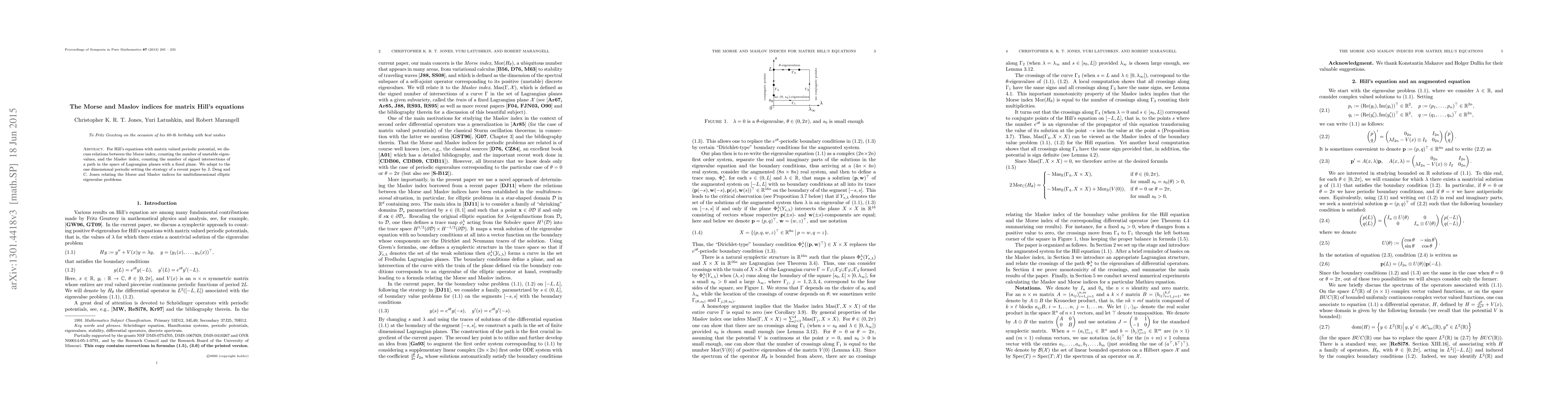 For Hill's equations with matrix valued periodic potential, we discuss relations between the Morse index, counting the number of unstable eigenvalues, and the Maslov index, counting the number of signed intersections of a path in the space of Lagrangian planes with a fixed plane. We adapt to the one dimensional periodic setting the strategy of a recent paper by J. Deng and C. Jones relating the Morse and Maslov indices for multidimensional elliptic eigenvalue problems.