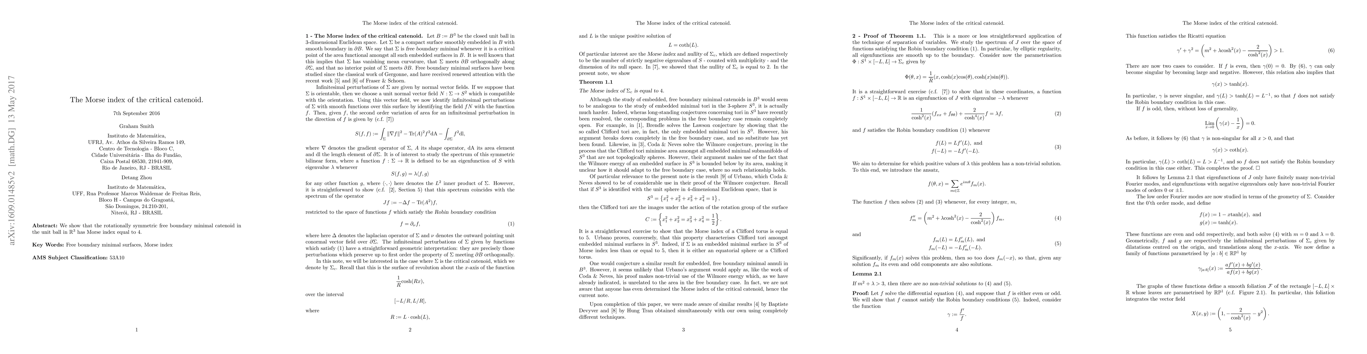 We show that the rotationally symmetric free boundary minimal catenoid in the unit ball in $\Bbb{R}^3$ has Morse index equal to $4$.