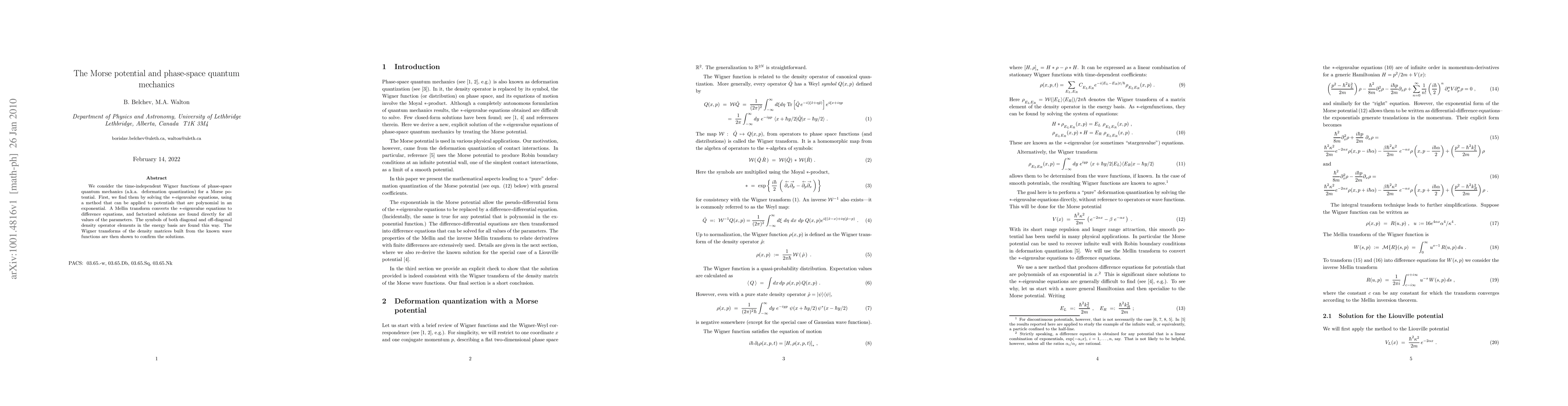 Researchers used deformation quantization to study a Morse potential in phase-space quantum mechanics, finding solutions for time-independent Wigner functions through Mellin transforms and factorized equations. The results confirm the density matrices built from known wave functions, providing new insights into this complex system.