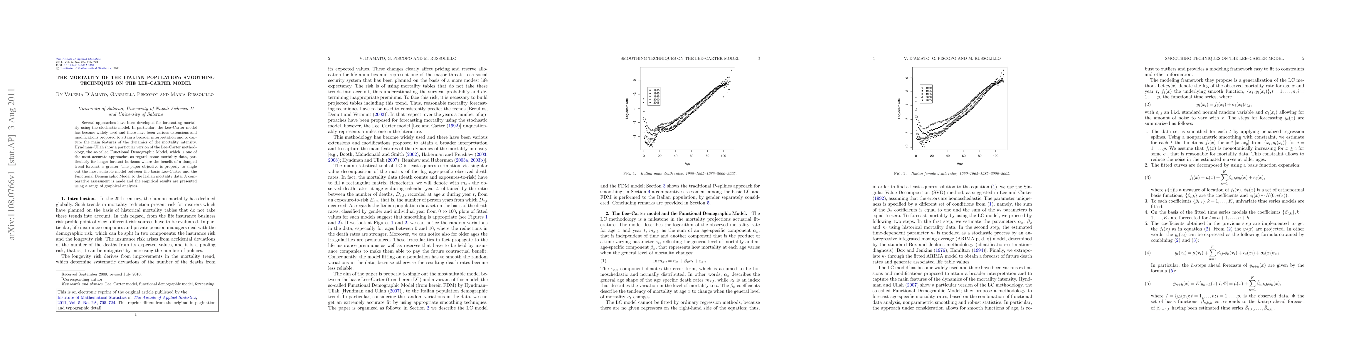 This paper compares the basic Lee-Carter model and the Functional Demographic Model to forecast Italian mortality rates, finding that the latter, which incorporates a damped trend, performs better for longer forecast horizons. The study uses graphical analyses to present empirical results.