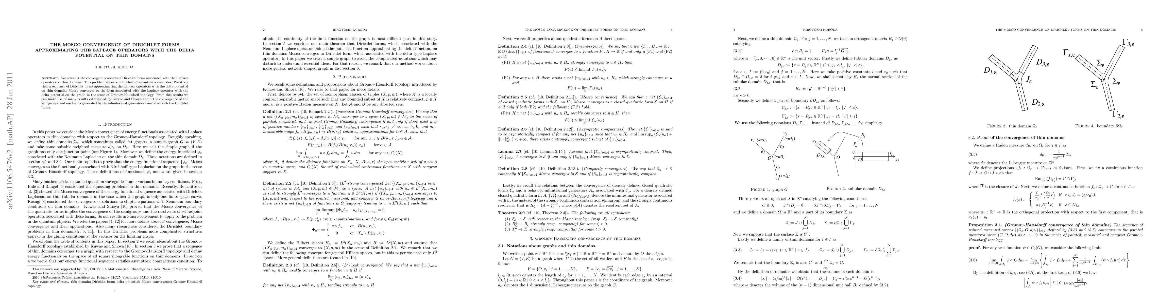 This paper investigates the Mosco convergence of Dirichlet forms approximating Laplace operators with delta potentials on thin domains, demonstrating their convergence to the form associated with the Laplace operator on the graph in Gromov-Hausdorff topology. The results extend established semigroup and resolvent convergence findings by Kuwae and Shioya.