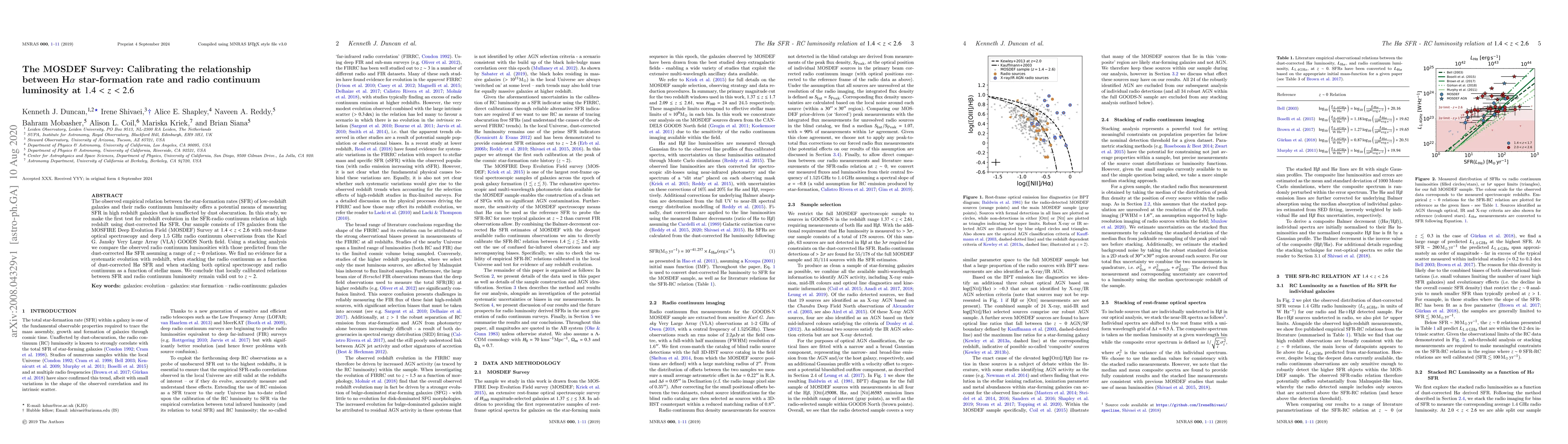 This study investigates the relationship between star-formation rates (SFR) and radio continuum luminosity in high-redshift galaxies using the MOSDEF Survey data. The findings suggest no systematic redshift evolution in the SFR-radio continuum relation, indicating that local calibrations remain valid up to $z\sim 2$.