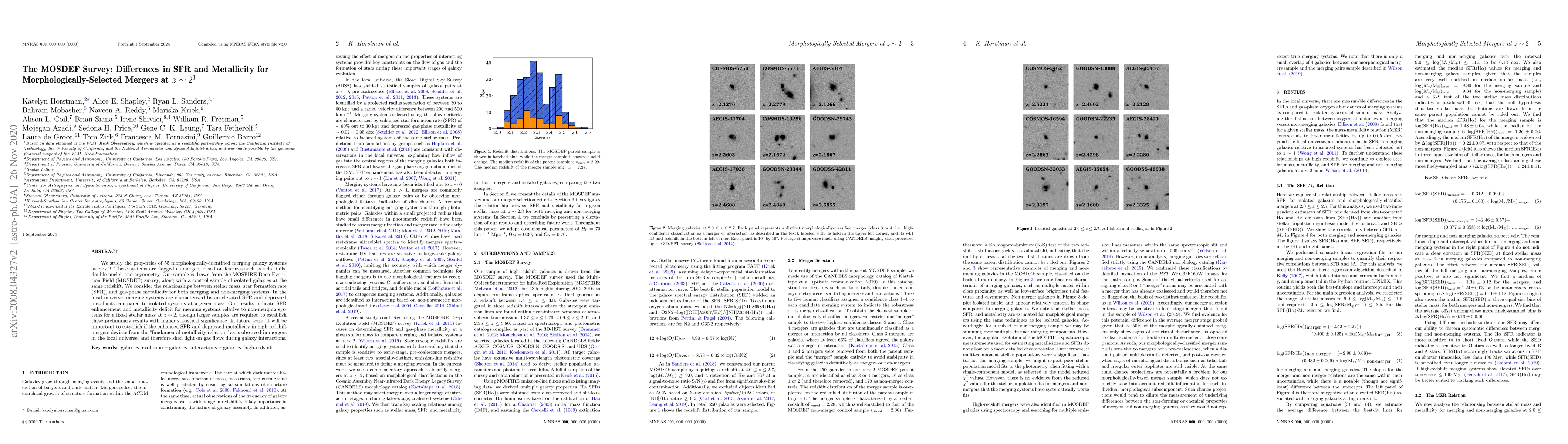 The paper presents a detailed analysis of morphologically-identified mergers at z~2, using the MOSDEF survey and the CANDELS morphology catalog, to study SFR and metallicity differences compared to isolated galaxies.