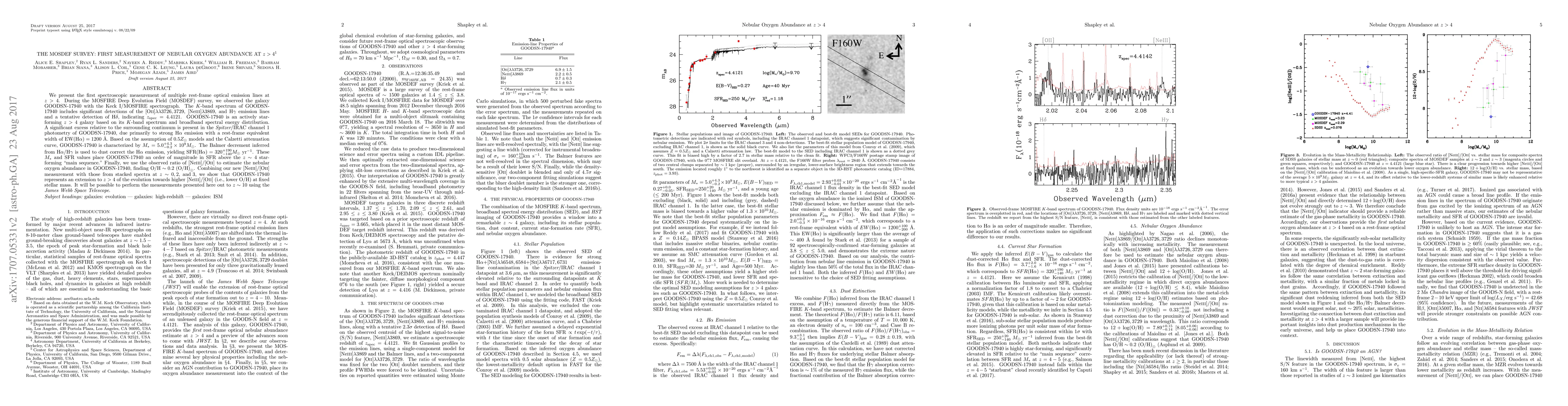 We present the first spectroscopic measurement of multiple rest-frame optical emission lines at $z>4$. During the MOSFIRE Deep Evolution Field (MOSDEF) survey, we observed the galaxy GOODSN-17940 with the Keck I/MOSFIRE spectrograph. The K-band spectrum of GOODSN-17940 includes significant detections of the [OII]$\lambda\lambda 3726,3729$, [NeIII]$\lambda3869$, and H$\gamma$ emission lines and a tentative detection of H$\delta$, indicating $z_{\rm{spec}}=4.4121$. GOODSN-17940 is an actively star-forming $z>4$ galaxy based on its K-band spectrum and broadband spectral energy distribution. A significant excess relative to the surrounding continuum is present in the Spitzer/IRAC channel 1 photometry of GOODSN-17940, due primarily to strong H$\alpha$ emission with a rest-frame equivalent width of $\mbox{EW(H}\alpha)=1200$ \AA. Based on the assumption of $0.5 Z_{\odot}$ models and the Calzetti attenuation curve, GOODSN-17940 is characterized by $M_*=5.0^{+4.3}_{-0.2}\times 10^9 M_{\odot}$. The Balmer decrement inferred from H$\alpha$/H$\gamma$ is used to dust correct the H$\alpha$ emission, yielding $\mbox{SFR(H}\alpha)=320^{+190}_{-140} M_{\odot}\mbox{ yr}^{-1}$. These $M_*$ and SFR values place GOODSN-17940 an order of magnitude in SFR above the $z\sim 4$ star-forming "main sequence." Finally, we use the observed ratio of [NeIII]/[OII] to estimate the nebular oxygen abundance in GOODSN-17940, finding $\mbox{O/H}\sim 0.2 \mbox{ (O/H)}_{\odot}$. Combining our new [NeIII]/[OII] measurement with those from stacked spectra at $z\sim 0, 2, \mbox{ and } 3$, we show that GOODSN-17940 represents an extension to $z>4$ of the evolution towards higher [NeIII]/[OII] (i.e., lower $\mbox{O/H}$) at fixed stellar mass. It will be possible to perform the measurements presented here out to $z\sim 10$ using the James Webb Space Telescope.