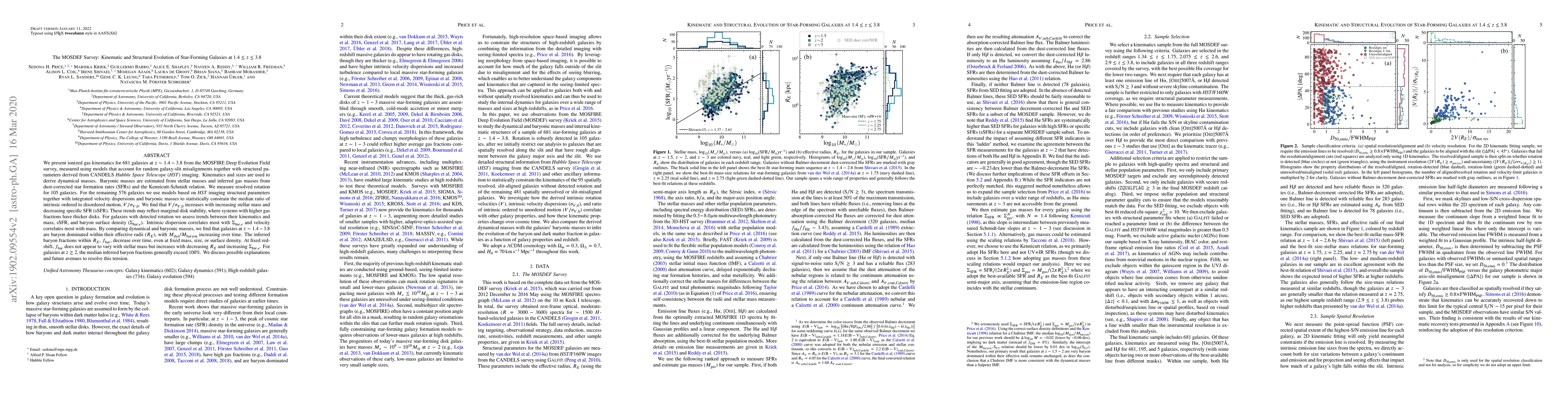 The MOSDEF Survey investigates the ionized gas kinematics and structural evolution of star-forming galaxies at $1.4\leq z\leq 3.8$, revealing that galaxies with higher gas fractions exhibit thicker disks and that baryonic mass fractions within effective radii decrease over time. The study finds galaxies are baryon dominated, with inferred baryon fractions exceeding 100% for $z\geq2$ galaxies, prompting discussions on potential resolutions.