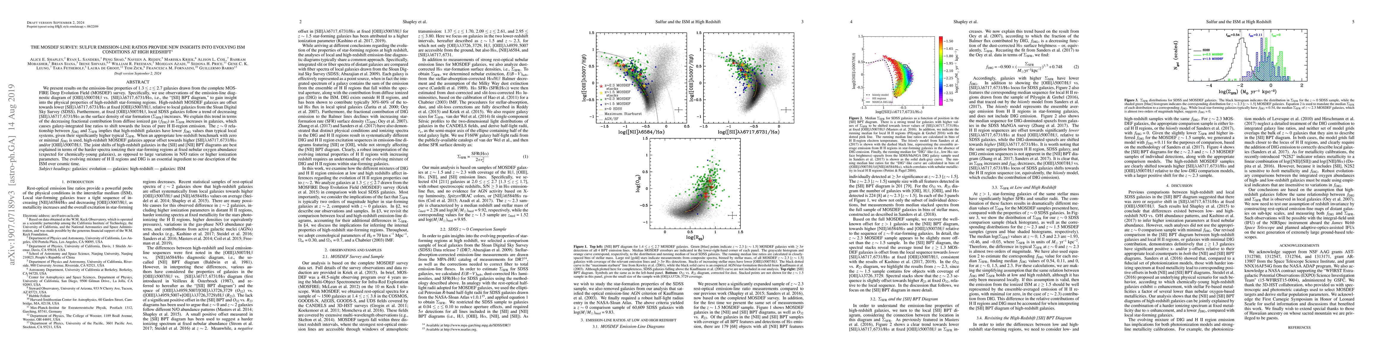 The MOSDEF Survey reveals that high-redshift galaxies exhibit different sulfur emission-line ratios compared to local galaxies, indicating lower fractional contributions from diffuse ionized gas (f_DIG) and harder ionizing spectra in their star-forming regions. These findings suggest evolving interstellar medium (ISM) conditions over cosmic time.