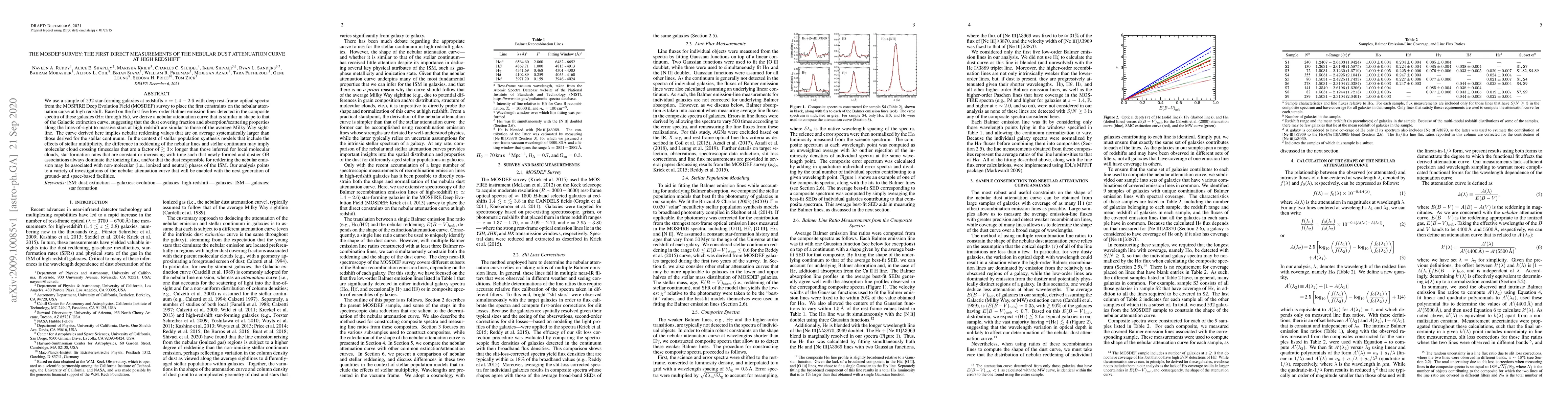 The MOSDEF Survey provides the first direct measurements of the nebular dust attenuation curve at high redshift ($z\sim 1.4-2.6$), revealing a shape similar to the Galactic extinction curve, suggesting comparable dust properties to the Milky Way. The derived nebular reddening values are systematically larger than those for the stellar continuum, indicating potential differences in star-formation timescales and dust phases.