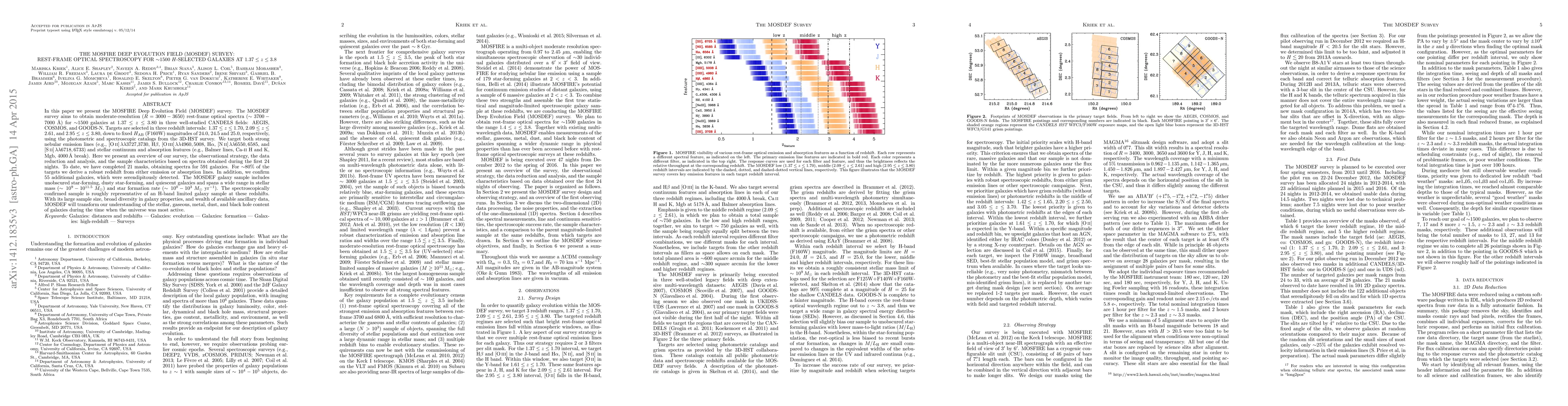 The MOSFIRE Deep Evolution Field (MOSDEF) survey aims to obtain rest-frame optical spectra for ~1500 H-selected galaxies at 1.37 < z < 3.8, targeting nebular emission lines and stellar features to study galaxy properties and evolution. Initial results confirm redshifts for ~80% of targets and reveal a diverse galaxy sample spanning a wide range in stellar mass and star formation rates.