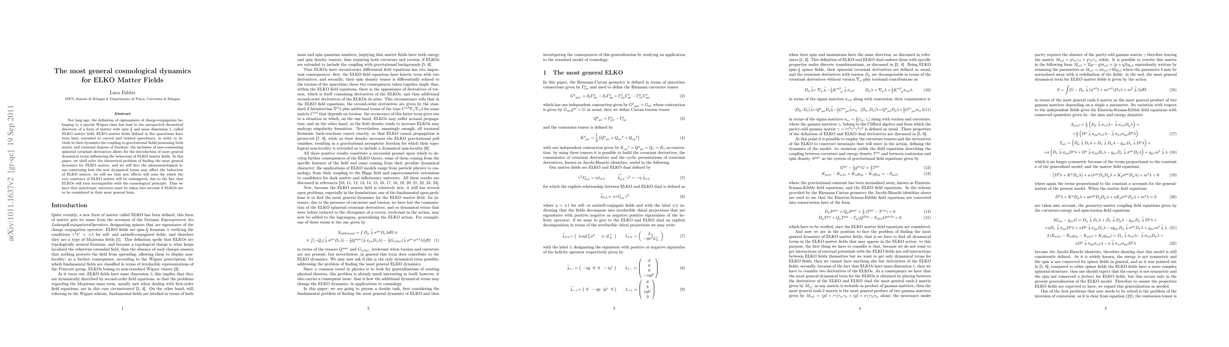 Not long ago, the definition of eigenspinors of charge-conjugation belonging to a special Wigner class has lead to the unexpected theoretical discovery of a form of matter with spin 1/2 and mass dimension 1, called ELKO matter field; ELKO matter fields defined in flat spacetimes have been later extended to curved and twisted spacetimes, in order to include in their dynamics the coupling to gravitational fields possessing both metric and torsional degrees of freedom: the inclusion of non-commuting spinorial covariant derivatives allows for the introduction of more general dynamical terms influencing the behaviour of ELKO matter fields. In this paper, we shall solve the theoretical problem of finding the most general dynamics for ELKO matter, and we will face the phenomenological issue concerning how the new dynamical terms may affect the behaviour of ELKO matter; we will see that new effects will arise for which the very existence of ELKO matter will be endangered, due to the fact that ELKOs will turn incompatible with the cosmological principle. Thus we have that anisotropic universes must be taken into account if ELKOs are to be considered in their most general form.