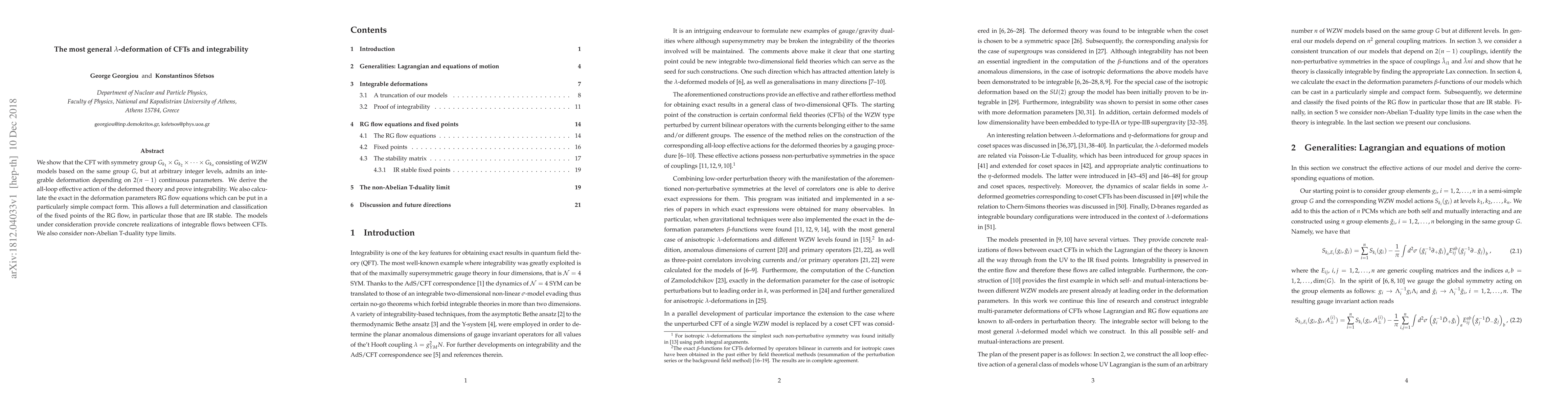 This paper demonstrates an integrable deformation of conformal field theories (CFTs) with symmetry groups $G_{k_1}\times G_{k_2}\times \cdots \times G_{k_n}$, showing that it depends on $2(n-1)$ continuous parameters. The authors derive the all-loop effective action and classify the infrared stable fixed points of the renormalization group flow.