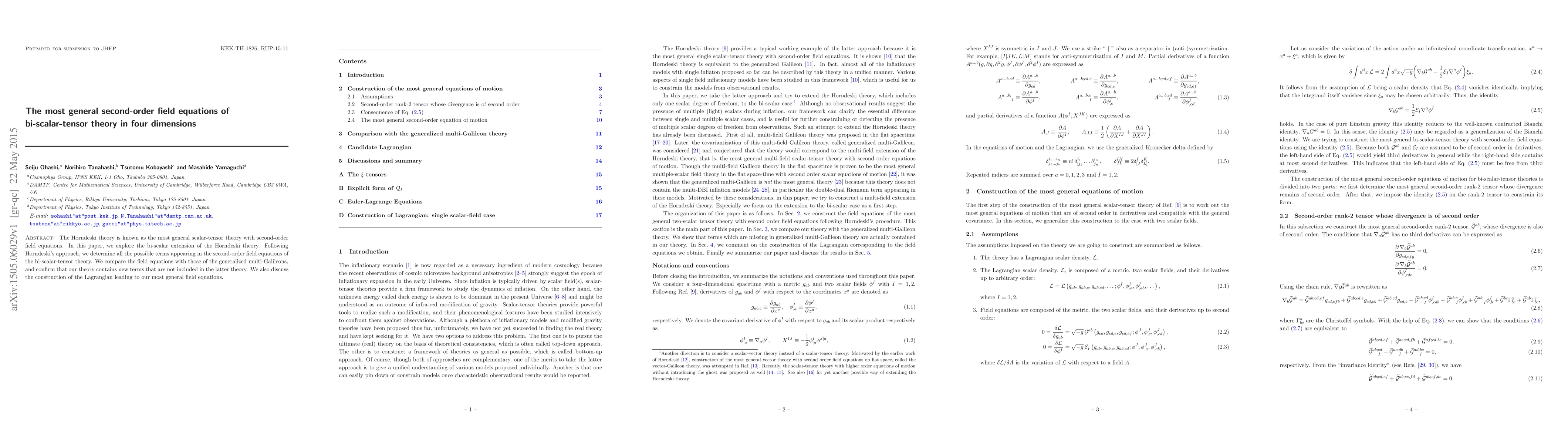 Researchers expand on Horndeski theory to create the most general bi-scalar-tensor field equations in four dimensions, revealing new terms not present in related theories.