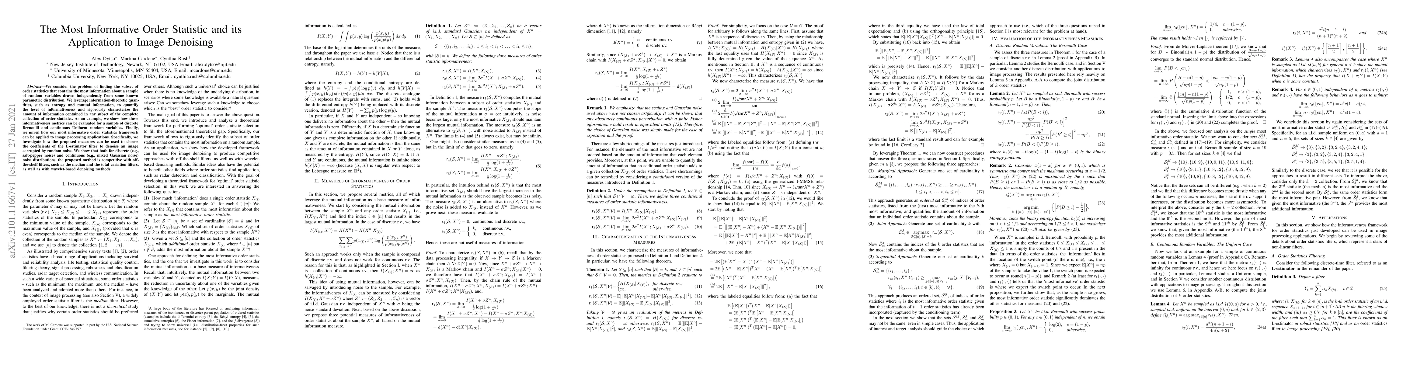 We consider the problem of finding the subset of order statistics that contains the most information about a sample of random variables drawn independently from some known parametric distribution. We leverage information-theoretic quantities, such as entropy and mutual information, to quantify the level of informativeness and rigorously characterize the amount of information contained in any subset of the complete collection of order statistics. As an example, we show how these informativeness metrics can be evaluated for a sample of discrete Bernoulli and continuous Uniform random variables. Finally, we unveil how our most informative order statistics framework can be applied to image processing applications. Specifically, we investigate how the proposed measures can be used to choose the coefficients of the L-estimator filter to denoise an image corrupted by random noise. We show that both for discrete (e.g., salt-pepper noise) and continuous (e.g., mixed Gaussian noise) noise distributions, the proposed method is competitive with off-the-shelf filters, such as the median and the total variation filters, as well as with wavelet-based denoising methods.
