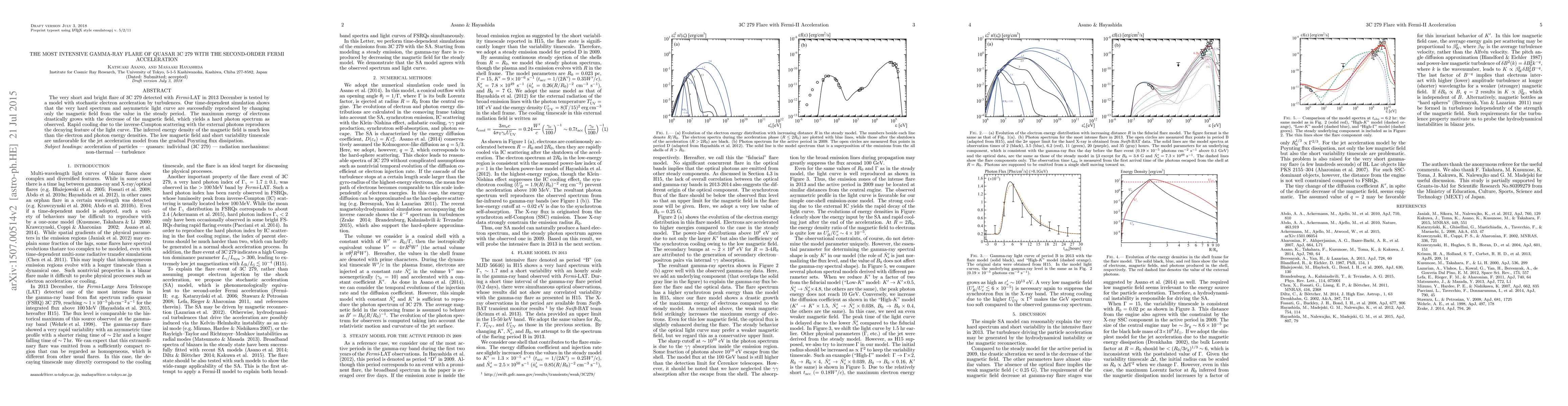 The very short and bright flare of 3C 279 detected with {\it Fermi}-LAT in 2013 December is tested by a model with stochastic electron acceleration by turbulences. Our time-dependent simulation shows that the very hard spectrum and asymmetric light curve are successfully reproduced by changing only the magnetic field from the value in the steady period. The maximum energy of electrons drastically grows with the decrease of the magnetic field, which yields a hard photon spectrum as observed. Rapid cooling due to the inverse-Compton scattering with the external photons reproduces the decaying feature of the light curve. The inferred energy density of the magnetic field is much less than the electron and photon energy densities. The low magnetic field and short variability timescale are unfavorable for the jet acceleration model from the gradual Poynting flux dissipation.