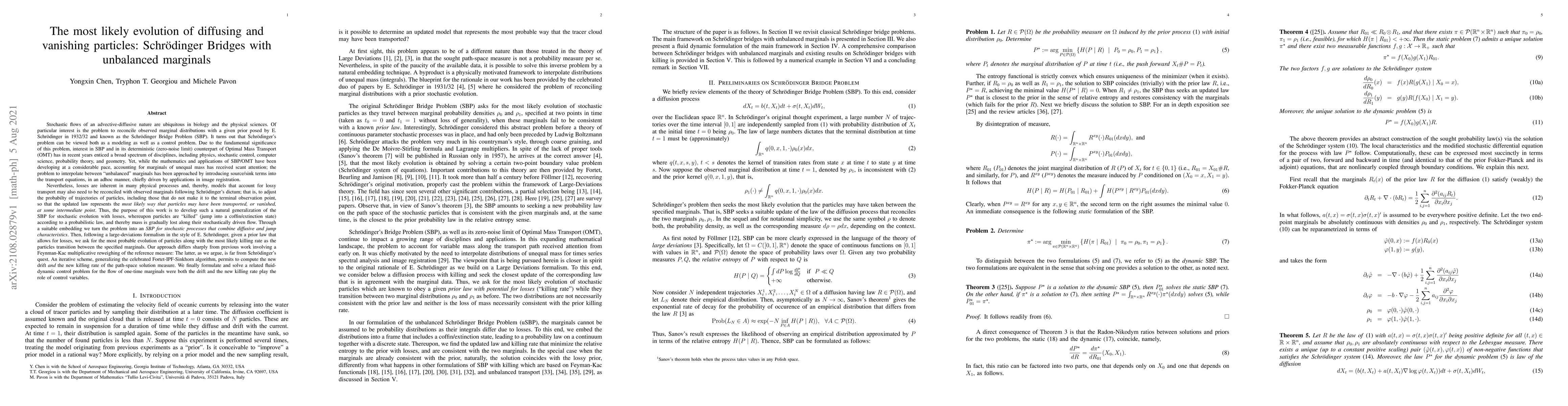 Stochastic flows of an advective-diffusive nature are ubiquitous in physical sciences. Of particular interest is the problem to reconcile observed marginal distributions with a given prior posed by E. Schrodinger in 1932/32 and known as the Schrodinger Bridge Problem (SBP). Due to its fundamental significance, interest in SBP has in recent years enticed a broad spectrum of disciplines. Yet, while the mathematics and applications of SBP have been developing at a considerable pace, accounting for marginals of unequal mass has received scant attention; the problem to interpolate between unbalanced marginals has been approached by introducing source/sink terms in an Adhoc manner. Nevertheless, losses are inherent in many physical processes and, thereby, models that account for lossy transport may also need to be reconciled with observed marginals following Schrodinger's dictum; that is, to adjust the probability of trajectories of particles, including those that do not make it to the terminal observation point, so that the updated law represents the most likely way that particles may have been transported, or vanished, at some intermediate point. Thus, the purpose of this work is to develop such a natural generalization of the SBP for stochastic evolution with losses, whereupon particles are "killed" according to a probabilistic law. Through a suitable embedding, we turn the problem into an SBP for stochastic processes that combine diffusive and jump characteristics. Then, following a large-deviations formalism, given a prior law that allows for losses, we ask for the most probable evolution of particles along with the most likely killing rate as the particles transition between the specified marginals. Our approach differs sharply from previous work involving a Feynman-Kac multiplicative reweighing of the reference measure: The latter, as we argue, is far from Schrodinger's quest.