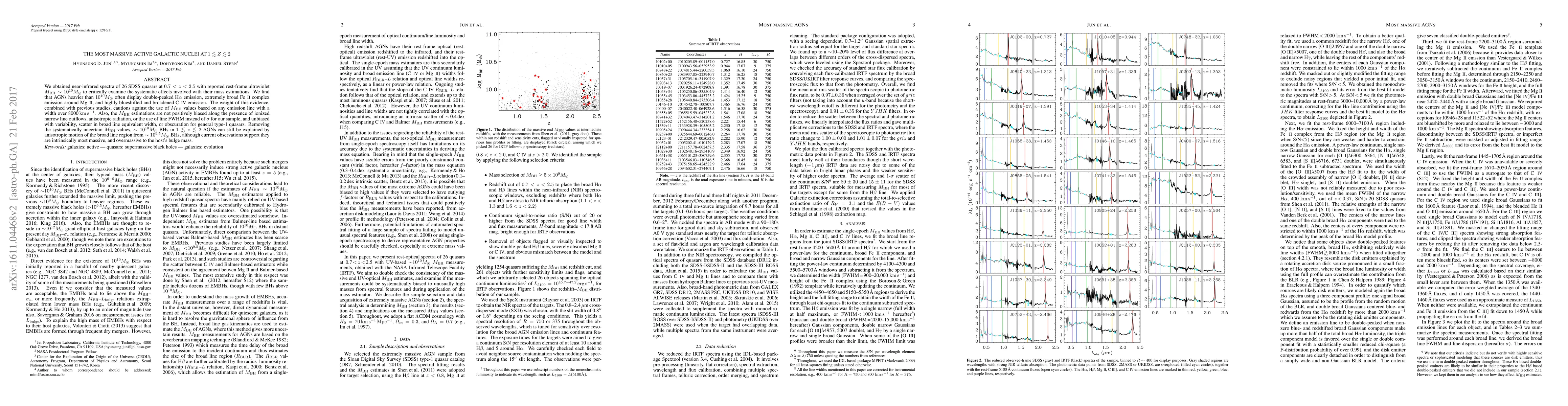 This study examines the mass of 26 quasars at 1 < z < 2 using near-infrared spectra, finding that many have masses over 10^10 solar masses, challenging previous estimates.