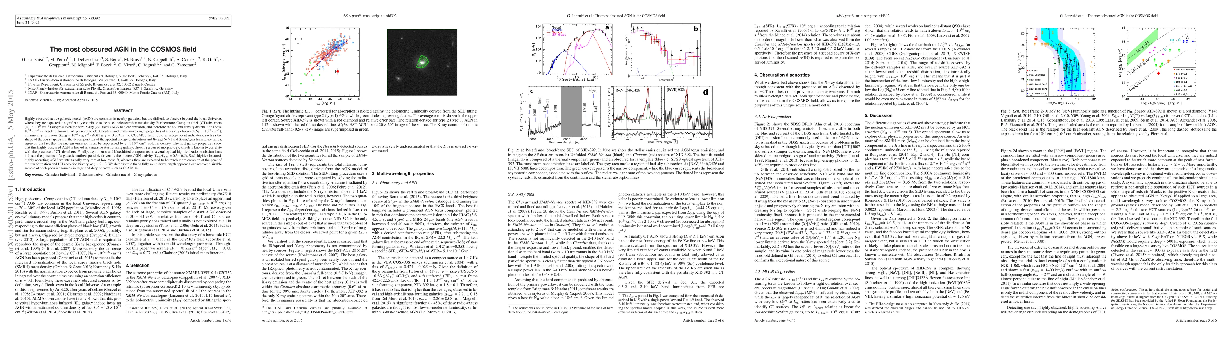 This paper identifies a highly obscured, luminous active galactic nucleus (AGN) in the COSMOS field at z=0.353, characterized by a column density of NH>~10^25 cm^-2. The study uses multi-wavelength data to confirm the AGN's suppressed nuclear emission and its presence in a massive, star-forming galaxy with a barred morphology.