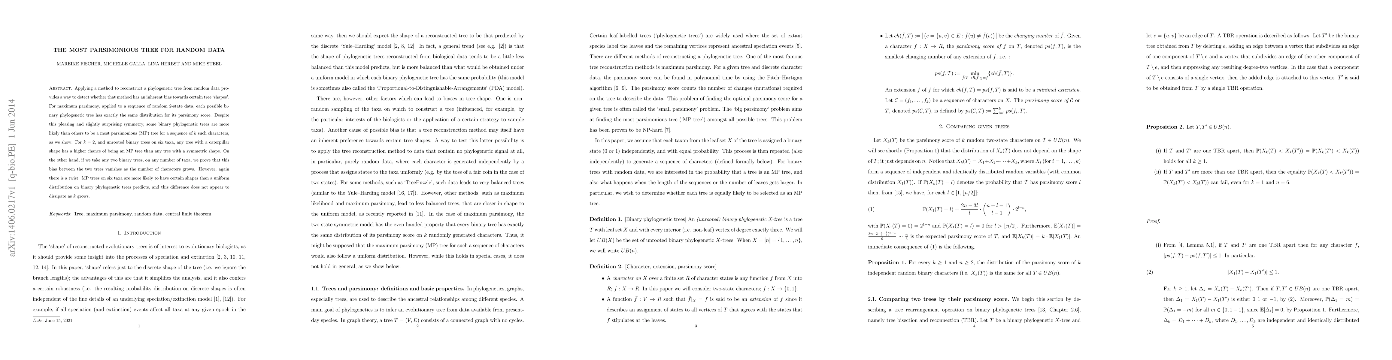This paper investigates the inherent biases in maximum parsimony methods when reconstructing phylogenetic trees from random data. It finds that while random data should yield trees with equal parsimony scores, certain tree shapes, like caterpillars, are more likely to be most parsimonious for small datasets, though this bias diminishes with more data. However, even with large datasets, some shapes remain more likely than others, indicating a persistent bias.