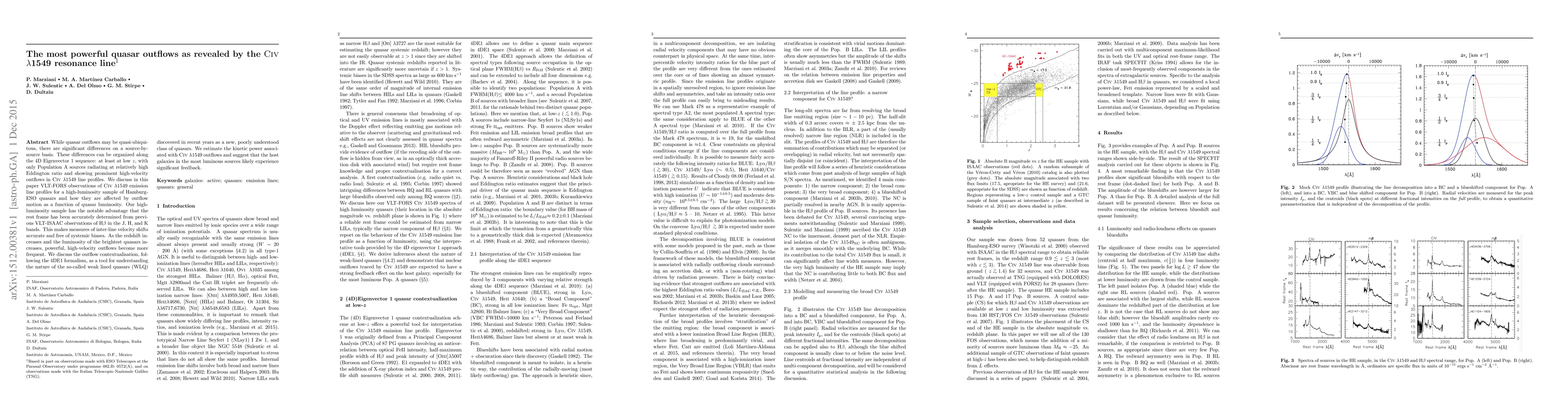 This paper analyzes VLT-FORS observations of the Civ {\lambda}1549 emission line in high-luminosity quasars to study powerful outflows, finding that high-luminosity quasars with high Eddington ratios exhibit prominent high-velocity outflows. The study suggests significant feedback from these outflows in the host galaxies of the most luminous quasars.