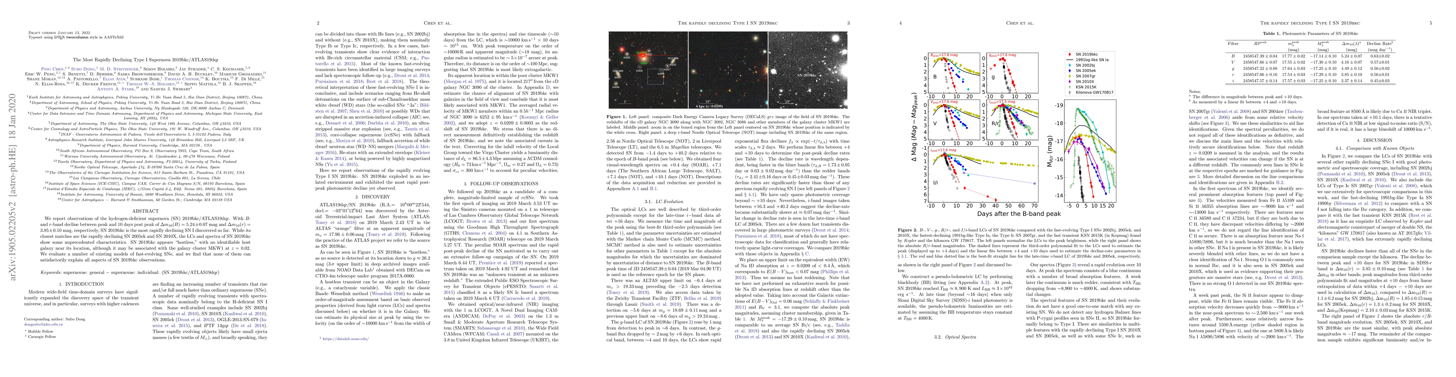We report observations of the hydrogen-deficient supernova (SN) 2019bkc/ATLAS19dqr. With B- and r-band decline between peak and 10 days post peak of Delta m_10(B)=5.24+/-0.07 mag and Delta m_10(r)=3.85+/-0.10$ mag, respectively, SN 2019bkc is the most rapidly declining SN I discovered so far. While its closest matches are the rapidly declining SN 2005ek and SN 2010X, the light curves and spectra of SN 2019bkc show some unprecedented characteristics. SN 2019bkc appears "hostless," with no identifiable host galaxy near its location, although it may be associated with the galaxy cluster MKW1 at z = 0.02. We evaluate a number of existing models of fast-evolving SNe, and we find that none of them can satisfactorily explain all aspects of SN 2019bkc observations.