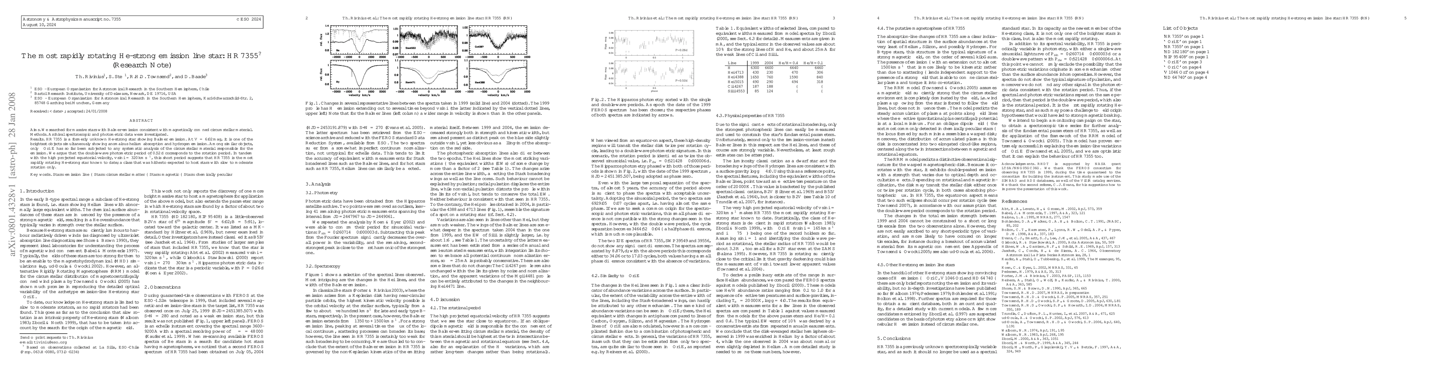 HR 7355 is identified as the most rapidly rotating He-strong star, exhibiting both anomalous helium absorption and hydrogen emission, with a rotation period of 0.52 days and a high projected equatorial velocity of 320 km/s. This challenges previous assumptions about the rotation rates of He-strong stars.