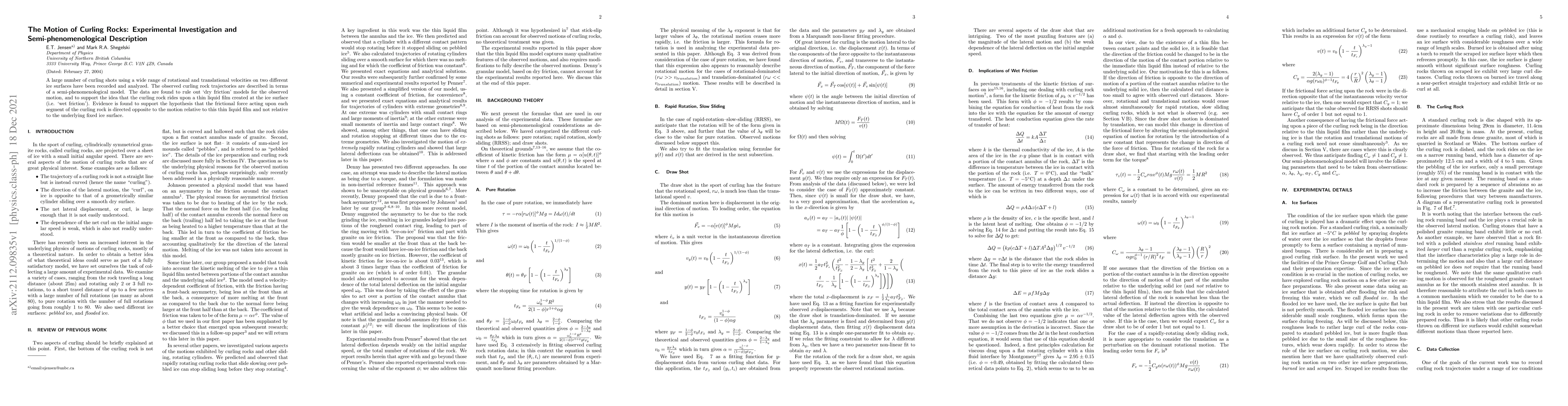 A large number of curling shots using a wide range of rotational and translational velocities on two different ice surfaces have been recorded and analyzed. The observed curling rock trajectories are described in terms of a semi-phenomenological model. The data are found to rule out `dry friction' models for the observed motion, and to support the idea that the curling rock rides upon a thin liquid film created at the ice surface (i.e. `wet friction'). Evidence is found to support the hypothesis that the frictional force acting upon each segment of the curling rock is directed opposite to the motion relative to this thin liquid film and not relative to the underlying fixed ice surface.
