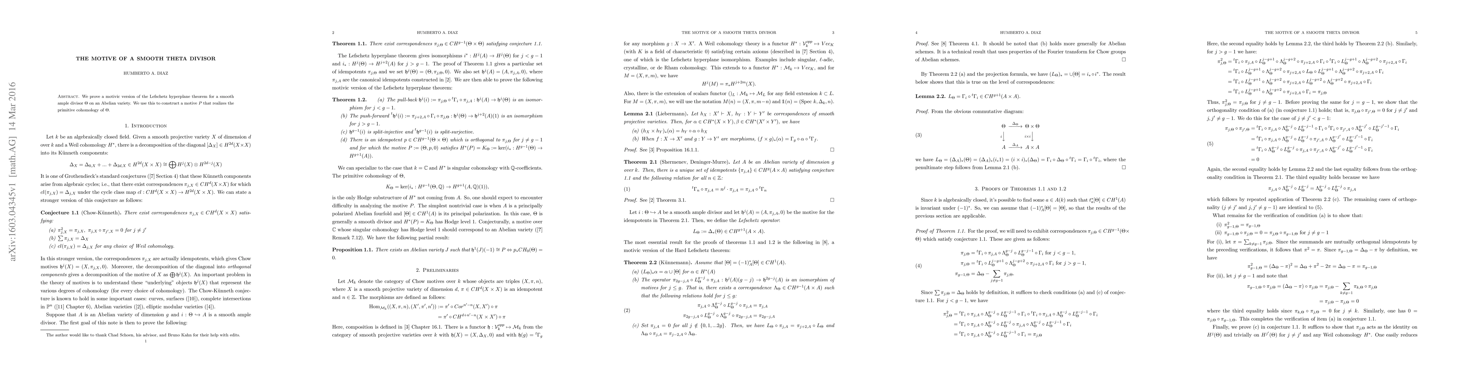 We prove a motivic version of the Lefschetz hyperplane theorem for a smooth ample divisor $\Theta$ on an Abelian variety. We use this to construct a motive $P$ that realizes the primitive cohomology of $\Theta$.